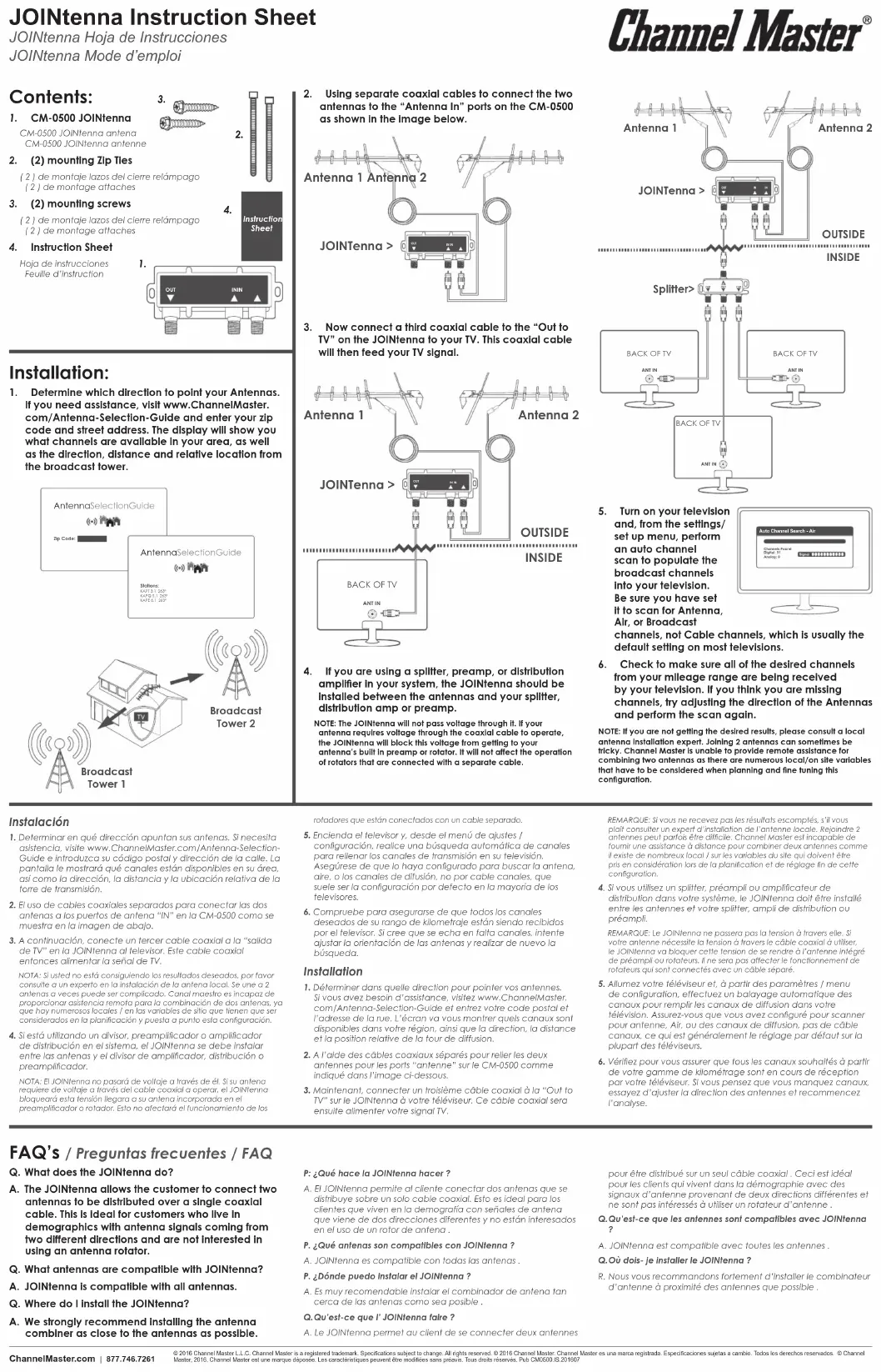 FOIRE AUX QUESTIONS - JOINtenna CM0500 Channel Master