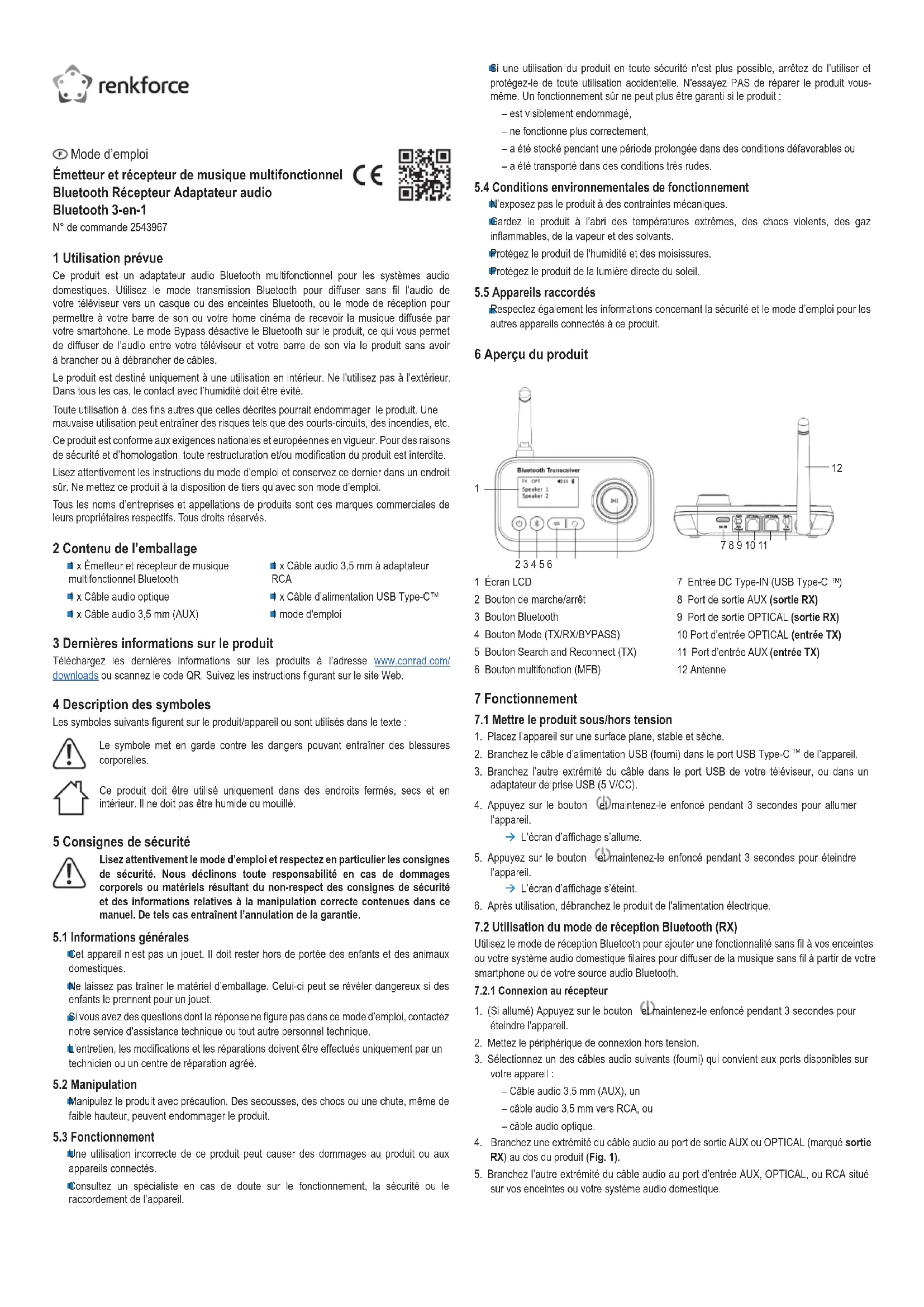 Retrouvez gratuitement la notice de l'appareil RFBTR210 Renkforce au format PDF.