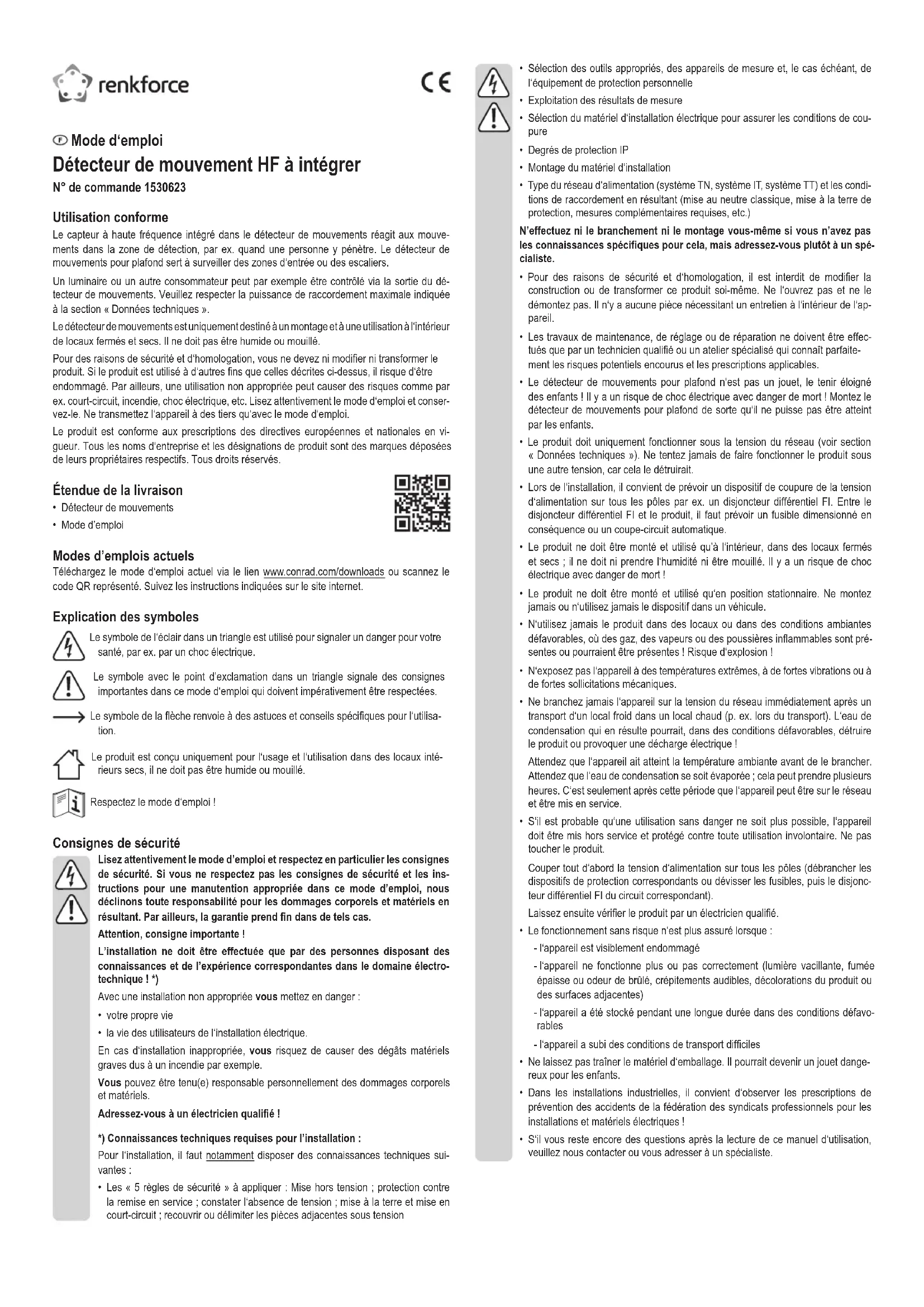 1530623 - Détecteur de mouvements Renkforce - Notice d'utilisation et mode d'emploi gratuit