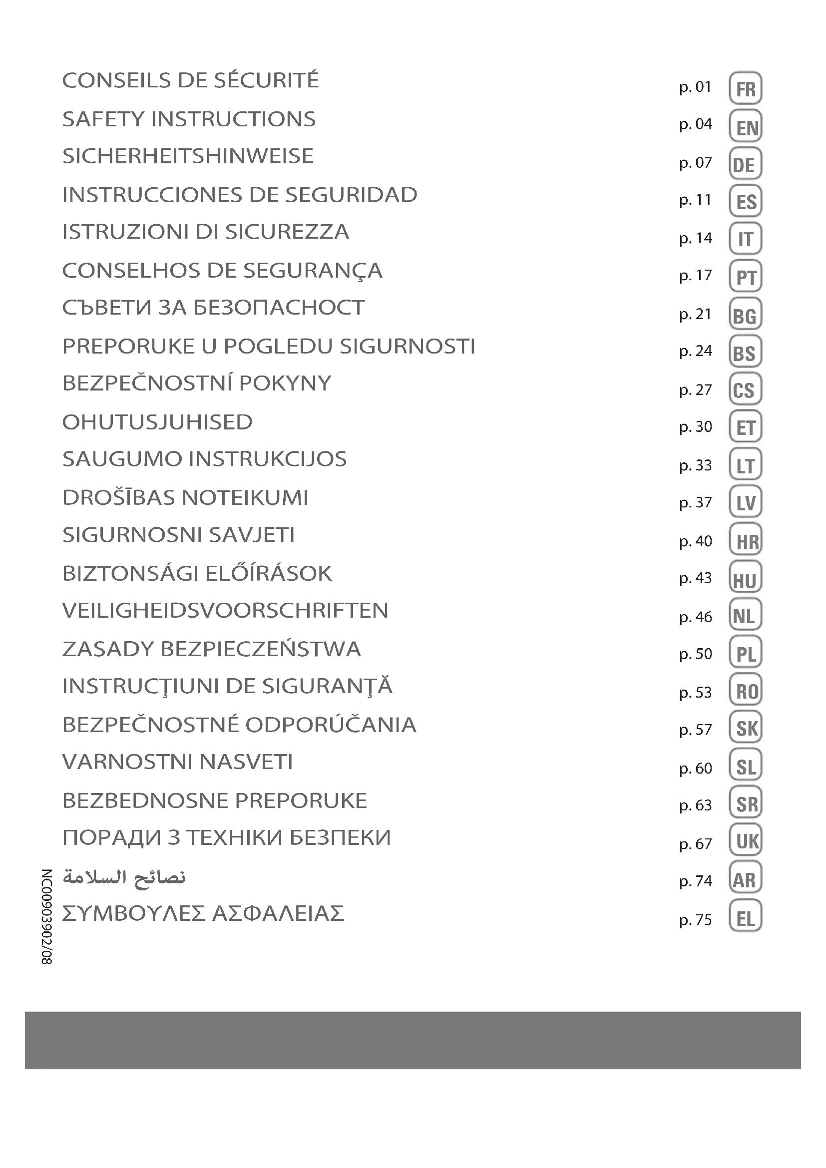 - Selon modèles : il s’agit d’équipements spécifiques à certains modèles ou d’accessoires disponibles en option. DÉPANNAGE Les réparations ne doivent être eectuées que par des spécialistes avec des pièces détachées d’origine. Si un problème persiste, conez votre aspirateur au Centre Service Agréé le plus proche ou contacter le service consommateurs.Si votre aspirateur ne démarre pas :• Vériez que l’appareil est correctement branché.Si le suceur est dicile à déplacer :• Diminuez la puissance en ouvrant le variateur mécanique de puissance de la crosse ou en déplaçant le variateur électronique de puissance vers la position MIN. • Vériez que la position du suceur soit adaptée au sol aspiré : - pour les tapis et moquettes, utilisez le suceur en position brosse rentrée, - pour les parquets et sols lisses, utilisez le suceur en position brosse sortie. Si le cordon ne rentre pas totalement :• Le cordon est ralenti lors de sa rentrée : ressortez le cordon et appuyez sur la pédale enrouleur de cordon.Si votre aspirateur s’arrête en cours d’aspiration :• La sécurité thermique a fonctionné. Vériez que le tube et le exible ne sont pas bouchés. Ou que le sac et les ltres ne sont pas saturés. Laissez refroidir 30 minutes avant de remettre l’aspirateur en marche. Aspirateurs avec sac Si votre aspirateur aspire moins bien, fait du bruit, sie ou n’aspire pas :• Un accessoire ou le exible est partiellement bouché : débouchez l’accessoire ou le exible.• Le sac est plein ou saturé par des poussières nes: remplacez le sac * ou videz le sac textile*.• Le couvercle est mal fermé : vériez la mise en place du sac, du support de sac et de la cassette ltre EPA* et refermez le couvercle.• Les ltres sont saturés, nettoyez ou changez le système de ltration (cassette EPA*, cassette ltre EPA lavable*, cassette microltre*. Se reporter à la notice complémentaire).Si l’indicateur de remplissage du sac est rouge :• Le sac est saturé : remplacez le sac ou videz le sac textile*. • Si après avoir changé le sac, le témoin reste rouge: le système de ltration est saturé (se reporter à la notice complémentaire) Si le couvercle ne se ferme pas :• Vériez la présence du support de sac, du sac ou son bon positionnement. • Vérier la présence de la cassette ltre EPA* ou de la cassette microltre* et/ou leur bon positionnement. Aspirateurs sans sac Si votre aspirateur aspire moins bien, fait du bruit, sie ou n’aspire pas :• Un accessoire ou le exible est partiellement bouché : débouchez l’accessoire ou le exible.• Le système de ltration est saturé: nettoyez ou remplacez la cassette ltre EPA* ou le ltre-mousse noir* ou le microltre*. Se reporter à la notice complémentaire.• Le bac à poussière est plein : videz-le et lavez-le. • Le couvercle de l’aspirateur n’est pas bien en place : refermez bien le couvercle. • Le bac à poussière est mal positionné : replacez-le correctement. • La grille sortie d’air est mal repositionnée : repositionnez correctement la grille sortie d’air.• Le microltre* et la mousse de ltration* sont absents : replacez-les dans la grille sortie d’air. • Le ltre EPA* et le ltre lavable* sont absents : repositionnez-les dans l’aspirateur.Si le couvercle ne se ferme pas :• Vériez que la cassette ltre EPA et le séparateur sont correctement repositionnés. • Vériez que la boîte à poussière* est bien placée dans le compartiment bac à poussière. MERCI DE CONSERVER CE MODE D ’EMPLOI ET VOTRE BON DE GARANTIE IMPORTANT : Dés que votre aspirateur fonctionne moins bien et avant toute vérication, arrêtez-le en appuyant sur la pédale Marche/Arrêt.* Selon modèles : il s’agit d’équipements spécifiques à certains modèles ou d’accessoires disponibles en option. FR4 5 and supervised in using it safely and are aware of the associated risks. Children should not be allowed to play with the appliance. Children should not clean or perform maintenance on the appliance unless they are supervised by a responsible adult. Keep the appliance and its cord out of the reach of children.
