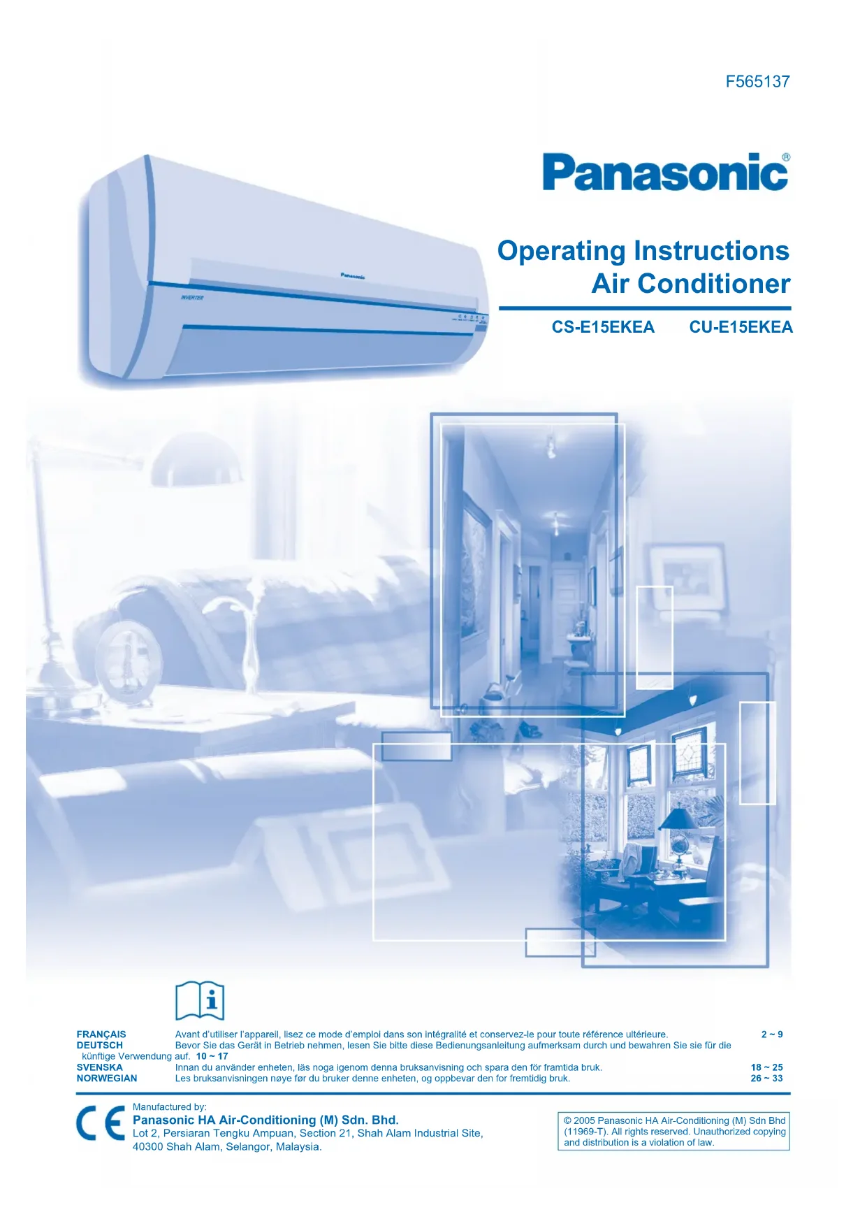 CSE15EKEA - Climatisation PANASONIC - Notice d'utilisation et mode d'emploi gratuit