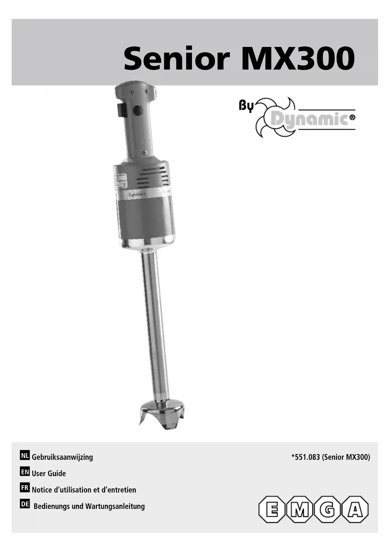 l Instructions pour la réparation de votre appareil : Si votre appareil ne fonctionne plus normalement, veuillez demander conseil à votre revendeur qui, souvent, pourra y porter remède ou au- trement, veuillez expédier cet appareil, sous emballage très solide à : DYNAMIC FRANCE S.A.S. 518 rue Léo Baekeland - B.P.57 85290 Mortagne-sur-Sèvre - FRANCE Tout retour d’appareil doit être effectué en Port payé. Notice d'utilisation et d'entretien Senior MX300 551083 G20M 9DE ACHTUNG