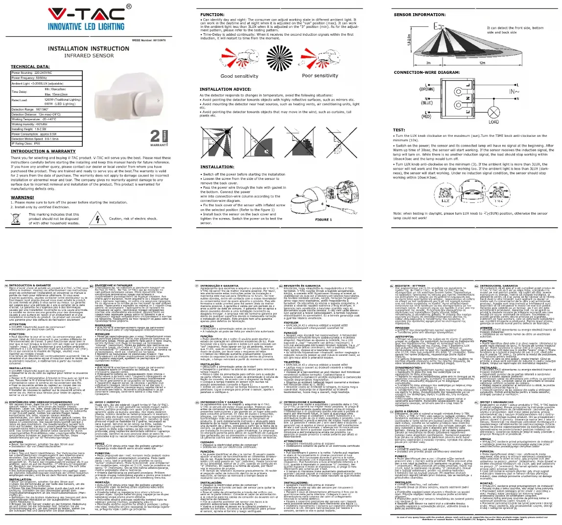 VT8093 - Détecteur V-TAC - Notice d'utilisation et mode d'emploi gratuit