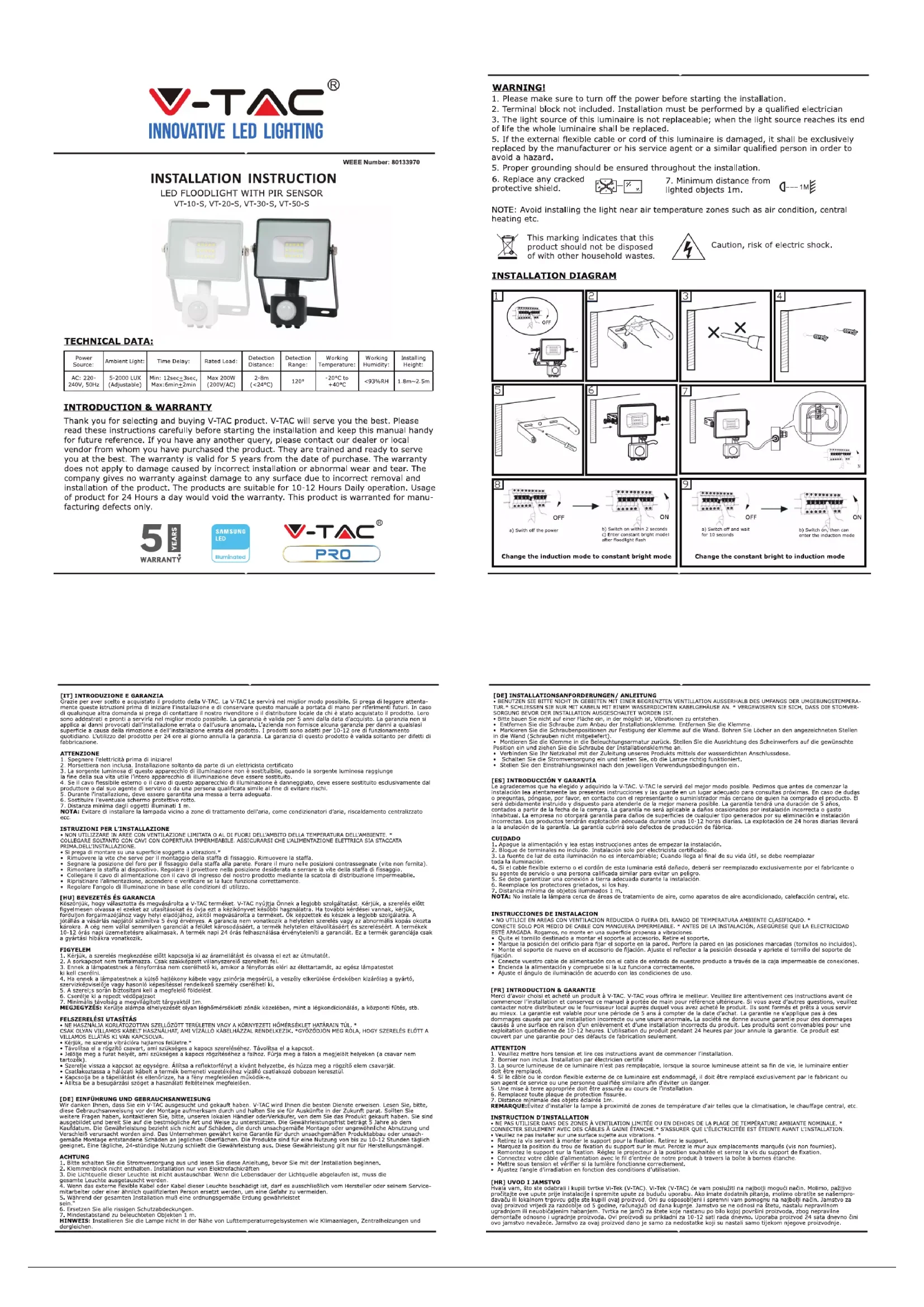 VT10S - Détecteur de mouvements V-TAC - Notice d'utilisation et mode d'emploi gratuit