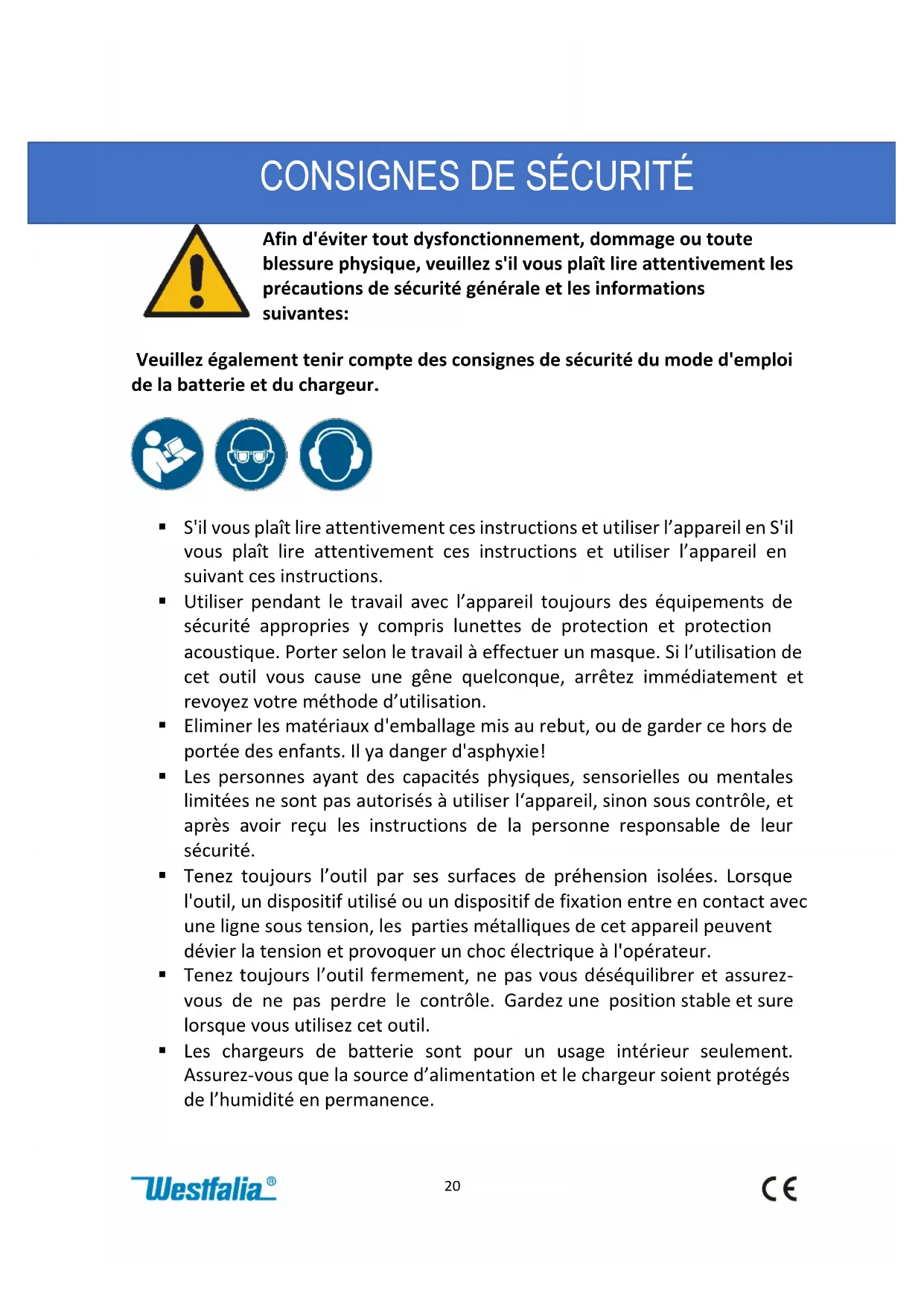 Téléchargez la notice de votre Scie au format PDF gratuitement ! Retrouvez votre notice ASSG 18 - Westfalia et reprennez votre appareil électronique en main. Sur cette page sont publiés tous les documents nécessaires à l'utilisation de votre appareil ASSG 18 de la marque Westfalia.