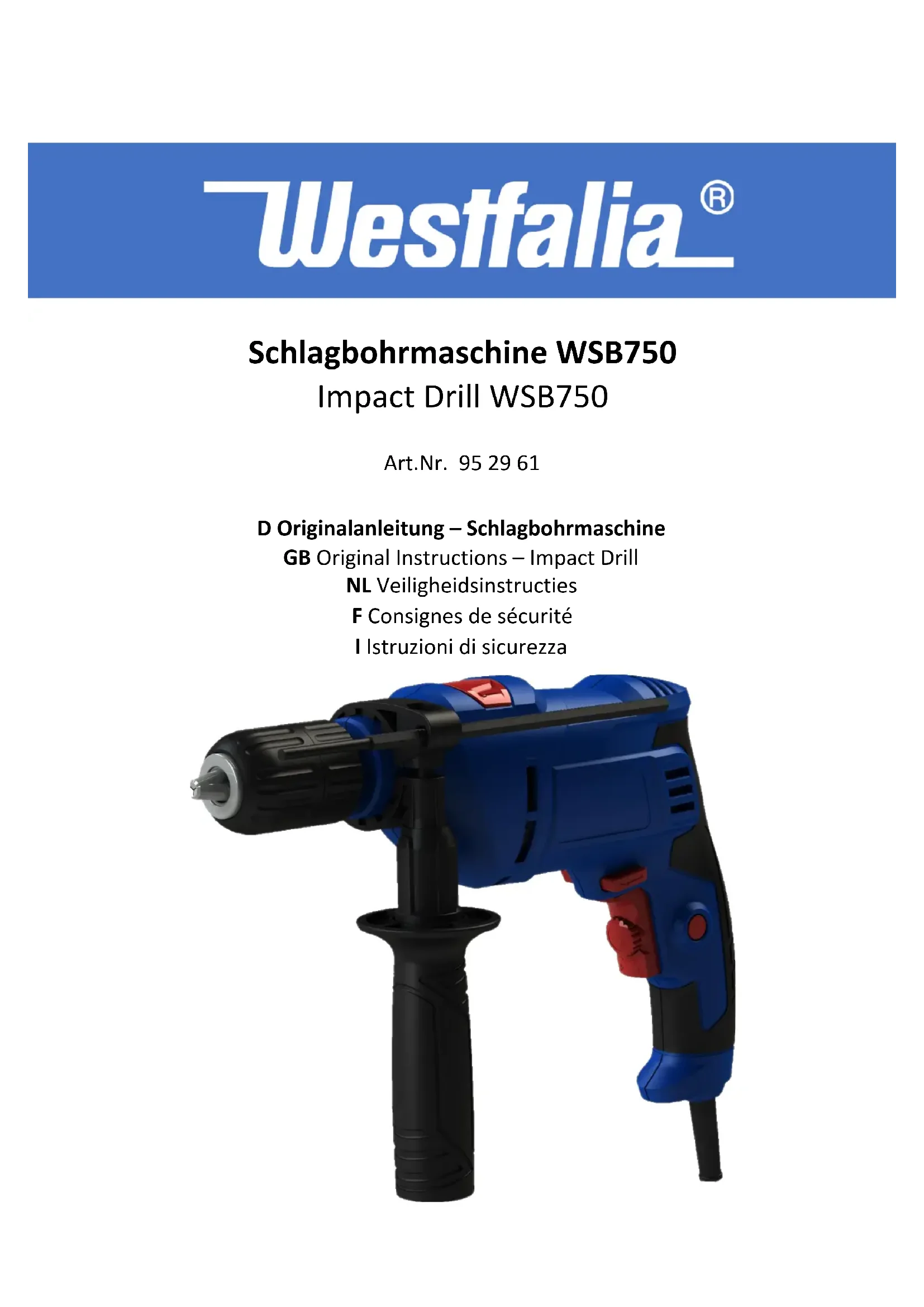 WSB750 - Perceuse Westfalia - Notice d'utilisation et mode d'emploi gratuit