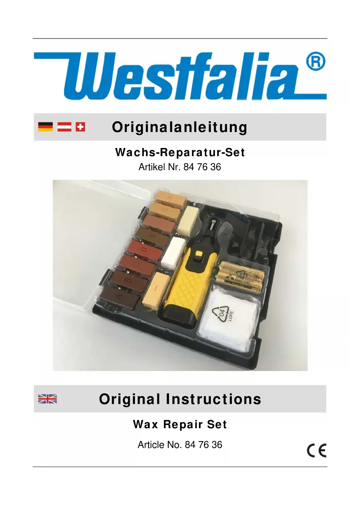 847636 - Kit de réparation Westfalia - Notice d'utilisation et mode d'emploi gratuit