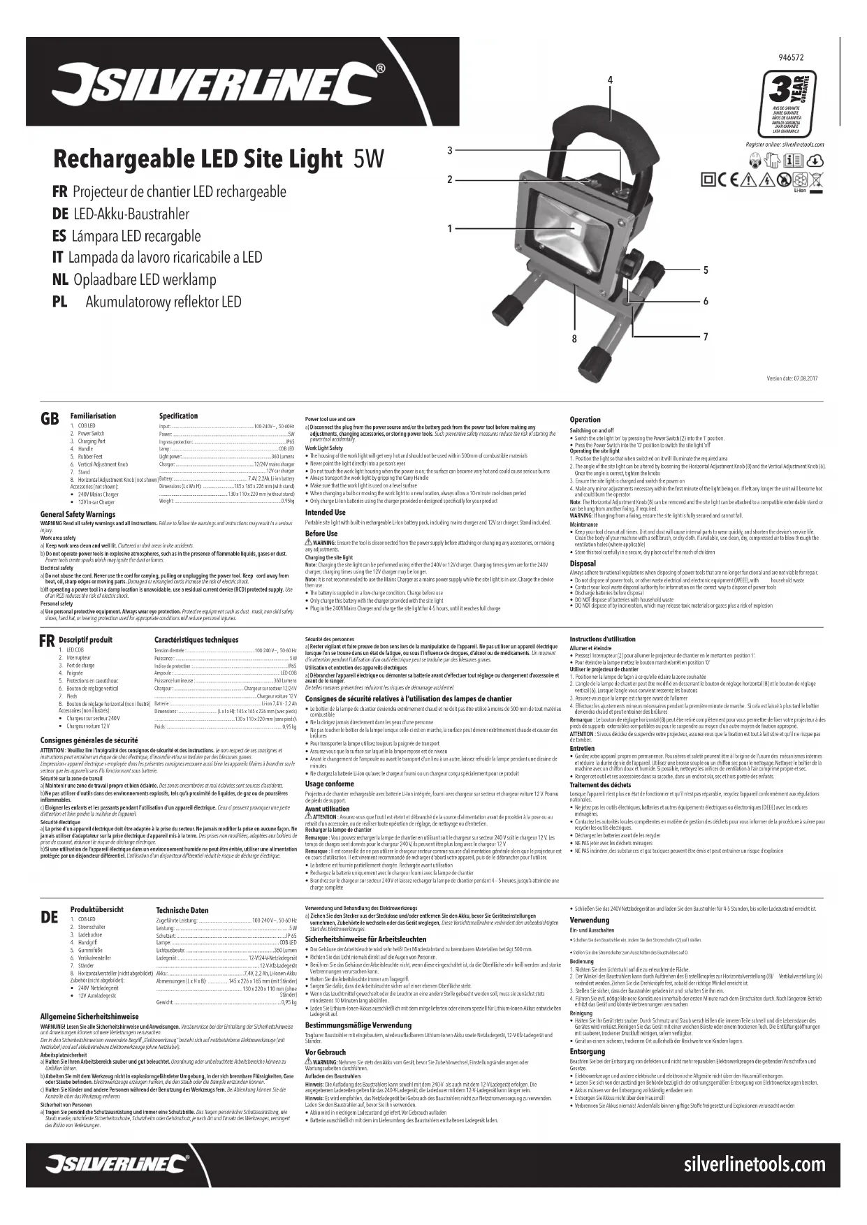 Téléchargez la notice de votre Éclairage au format PDF gratuitement ! Retrouvez votre notice 946572 - SILVERLINE et reprennez votre appareil électronique en main. Sur cette page sont publiés tous les documents nécessaires à l'utilisation de votre appareil 946572 de la marque SILVERLINE.