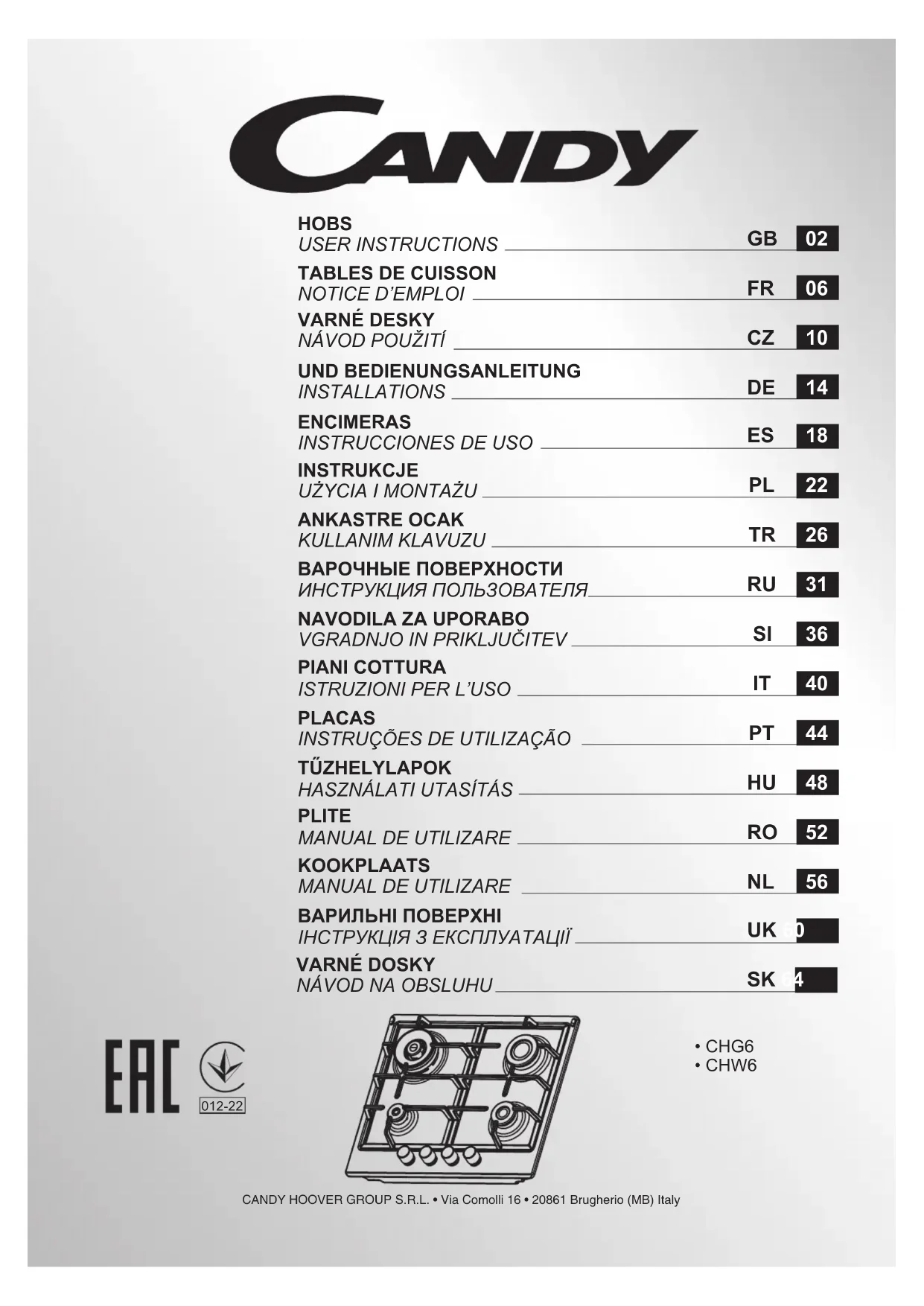 Retrouvez gratuitement la notice de l'appareil CHW6BRBB CANDY au format PDF.