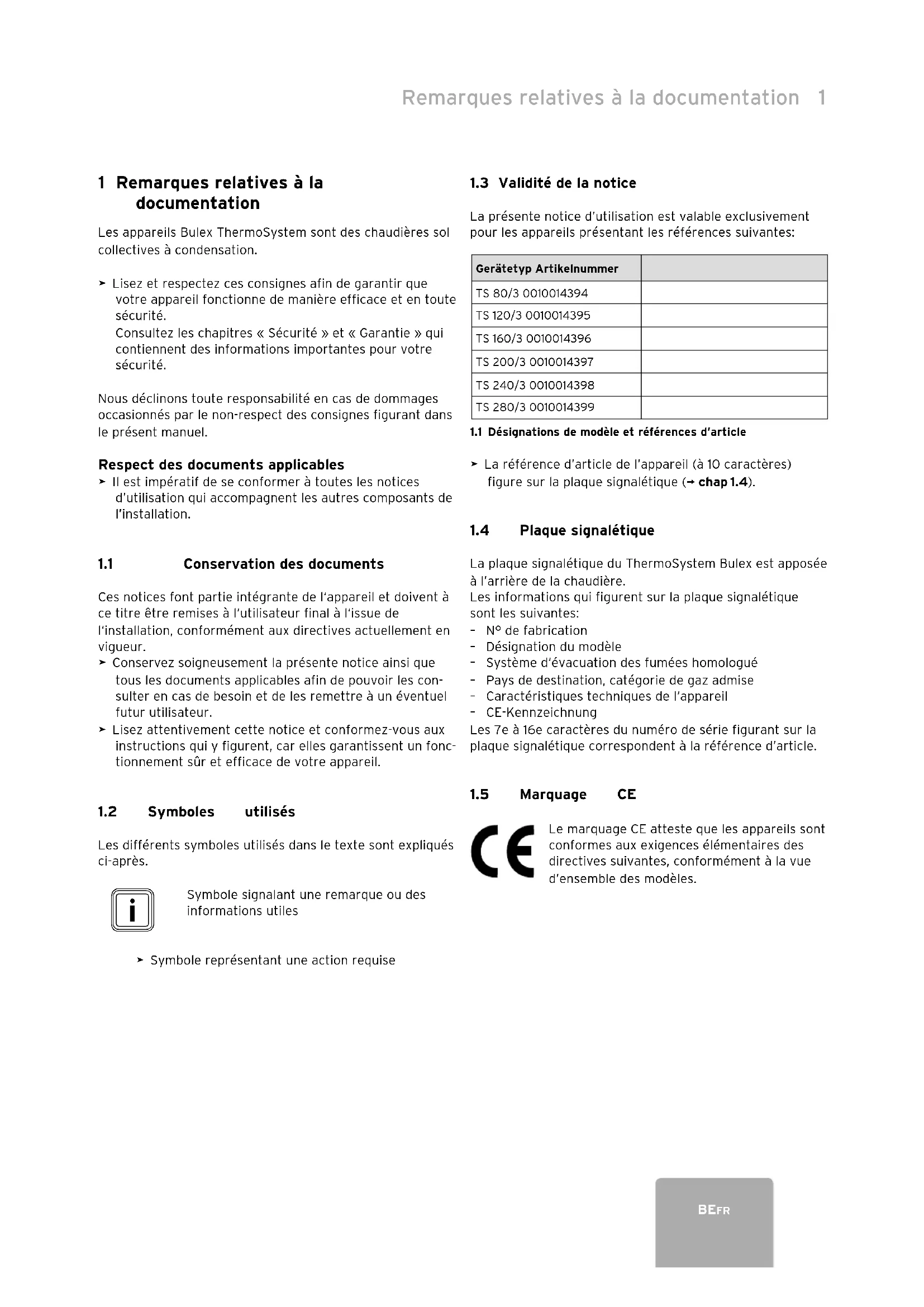 6 Garantie constructeur .................................................15BEFR Remarques relatives à la documentation Notice d'emploi ThermoSystem HR TS 0020149579_013