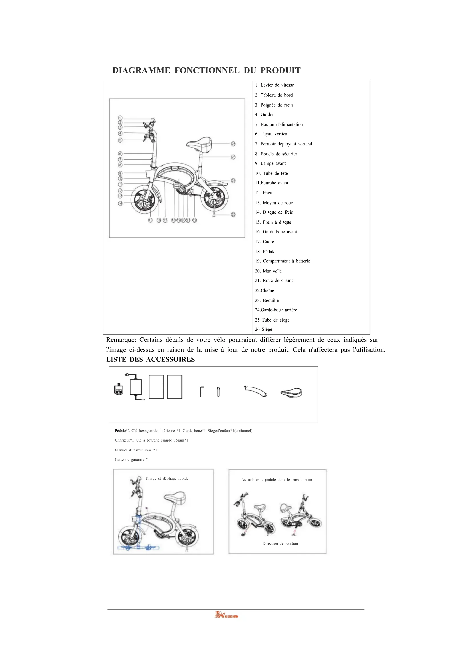 24.Garde-boue arrière 25 Tube de siège 26 Siège Remarque: Certains détails de votre vélo pourraient différer légèrement de ceux indiqués sur l'image ci-dessus en raison de la mise à jour de notre produit. Cela n'affectera pas l'utilisation.