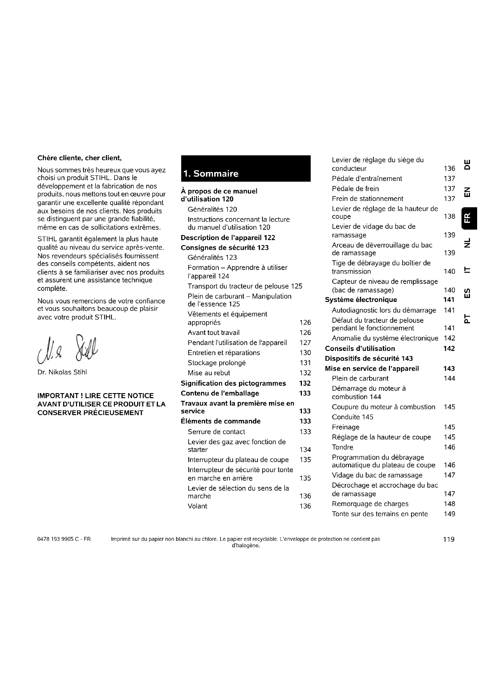Nous vous remercions de votre confiance et vous souhaitons beaucoup de plaisir avec votre produit STIHL.