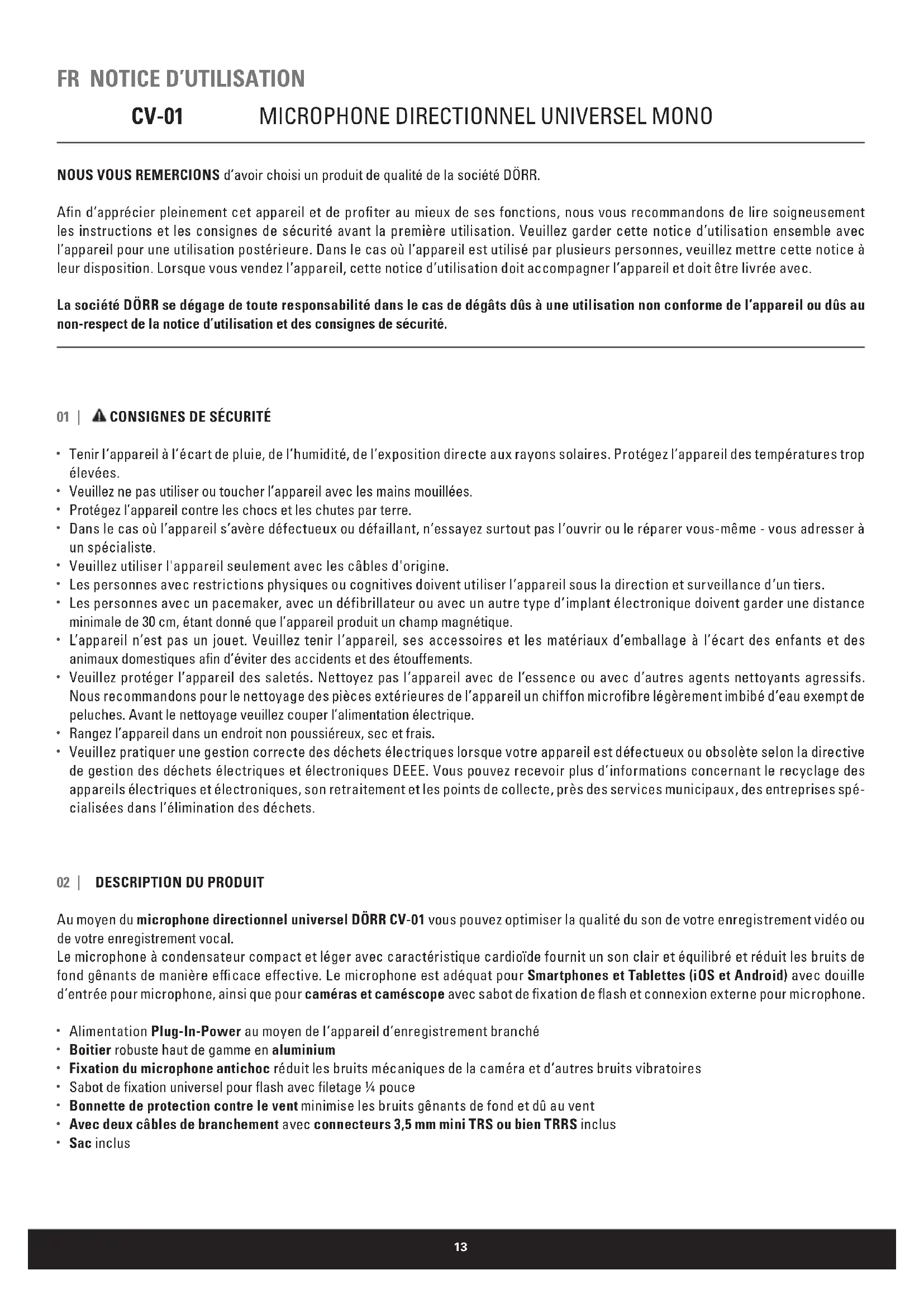 CV01 - Microphone Dörr - Notice d'utilisation et mode d'emploi gratuit