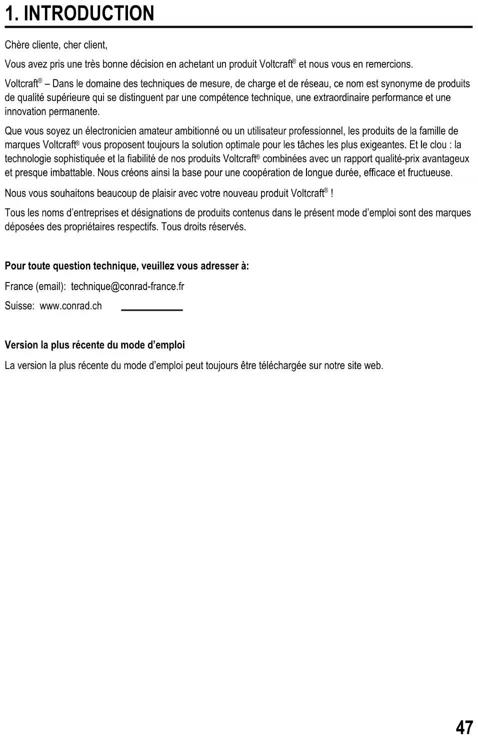 combinées avec un rapport qualité-prix avantageux et presque imbattable. Nous créons ainsi la base pour une coopération de longue durée, efcace et fructueuse. Nous vous souhaitons beaucoup de plaisir avec votre nouveau produit Voltcraft