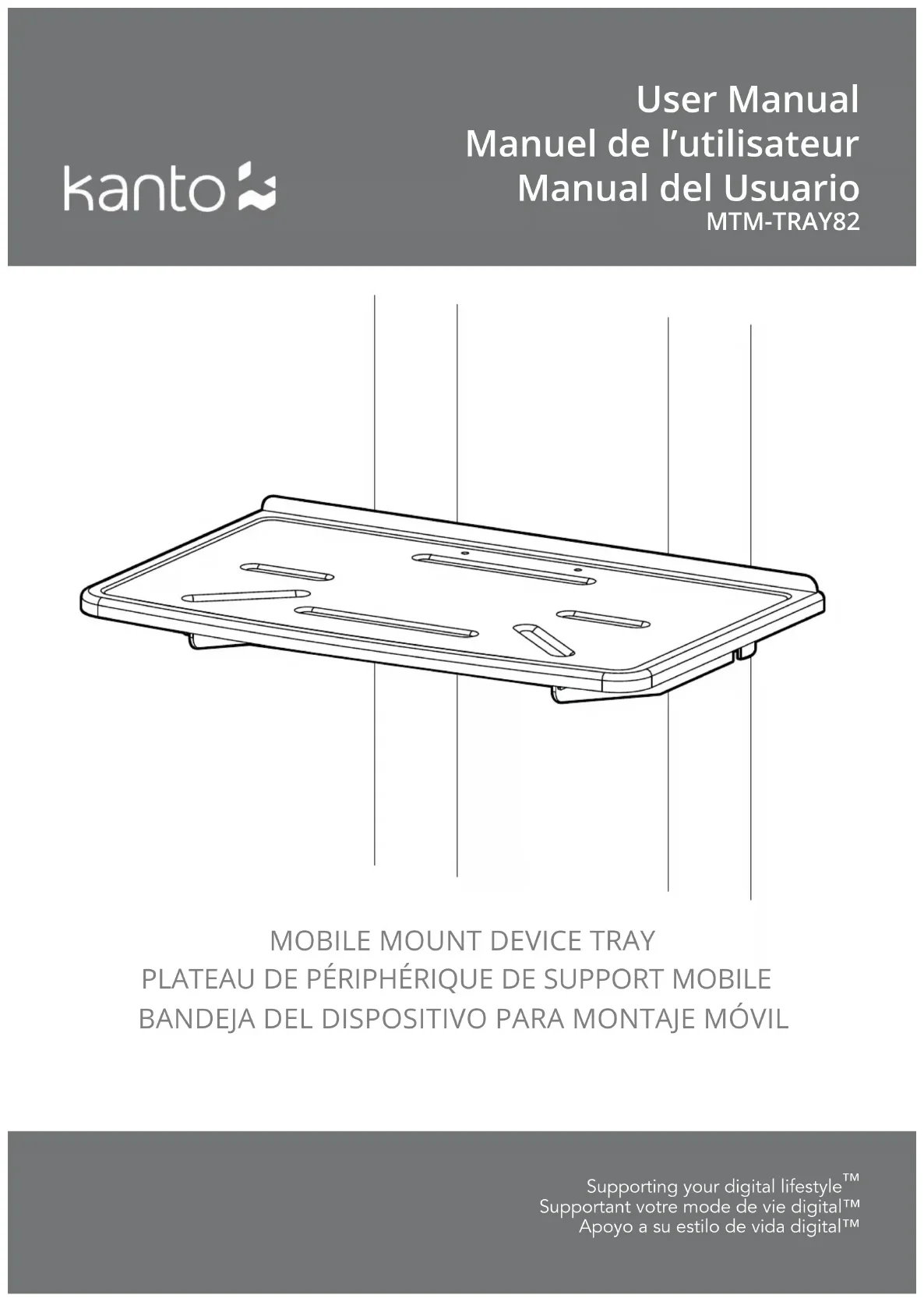 Le manuel d'utilisation du Kanto MTMTRAY82 est disponible en ligne sur le site du fabricant ou dans l'emballage du produit.