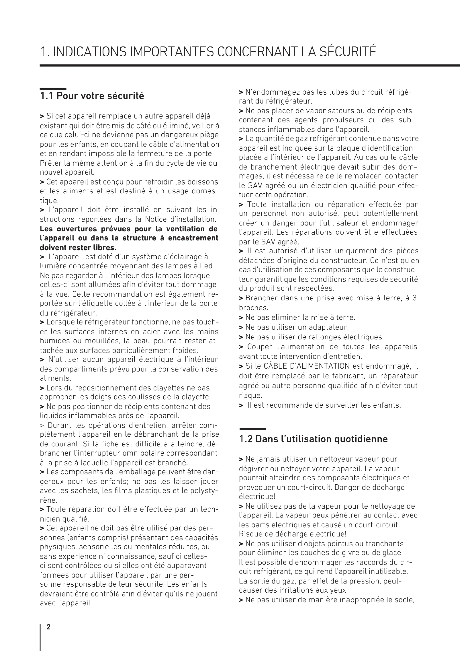 1.1 Pour votre sécurité