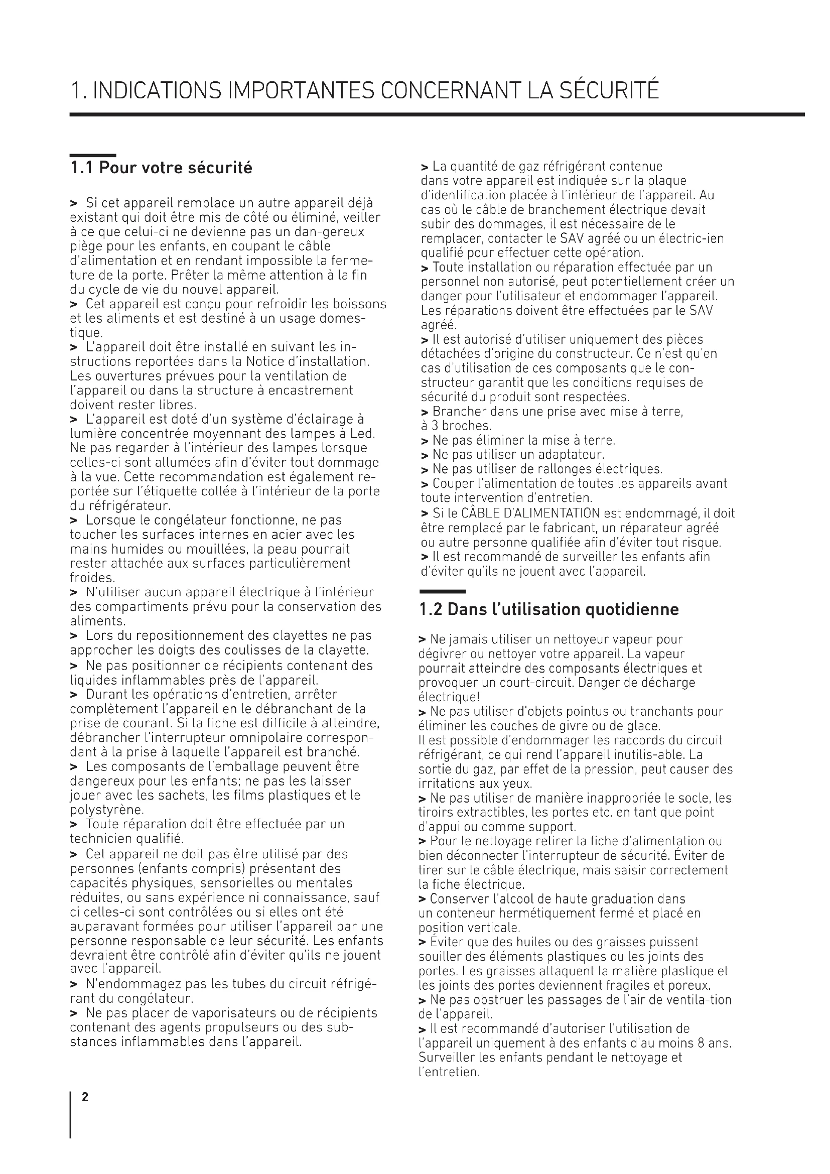 1.1 Pour votre sécurité