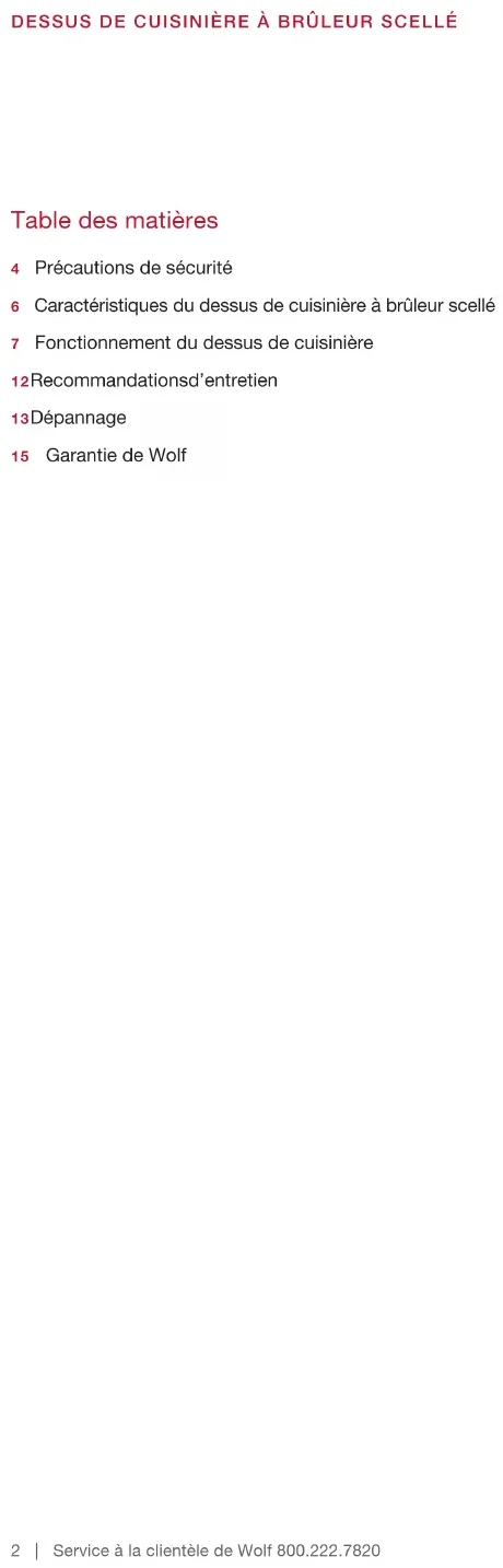 Comment commencer Nous savons que vous êtes impatient de commencer à cuisiner, mais avant de le faire, veuillez prendre quelques instants pour lire ce guide d’utilisation et d’entretien. Que vous soyez un cuisinier occasionnel ou un chef expert, il vous sera bénéque de vous familiariser avec les pratiques de sécurité, les fonctions, le fonctionnement et les recom- mandations d’entretien de votre dessus de cuisinière à brûleur scellé de Wolf.