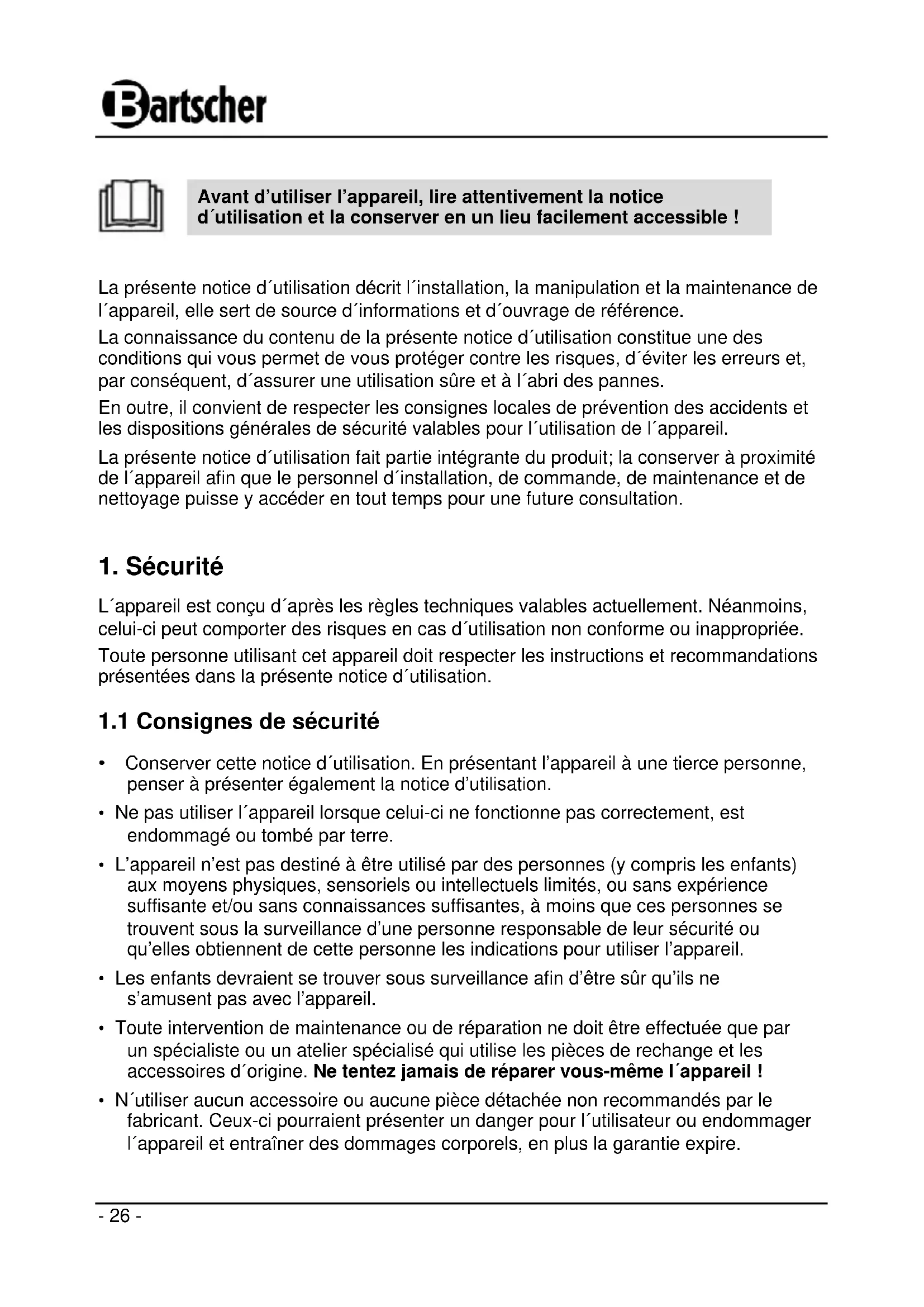 Retrouvez gratuitement la notice de l'appareil IHR650 BARTSCHER au format PDF.