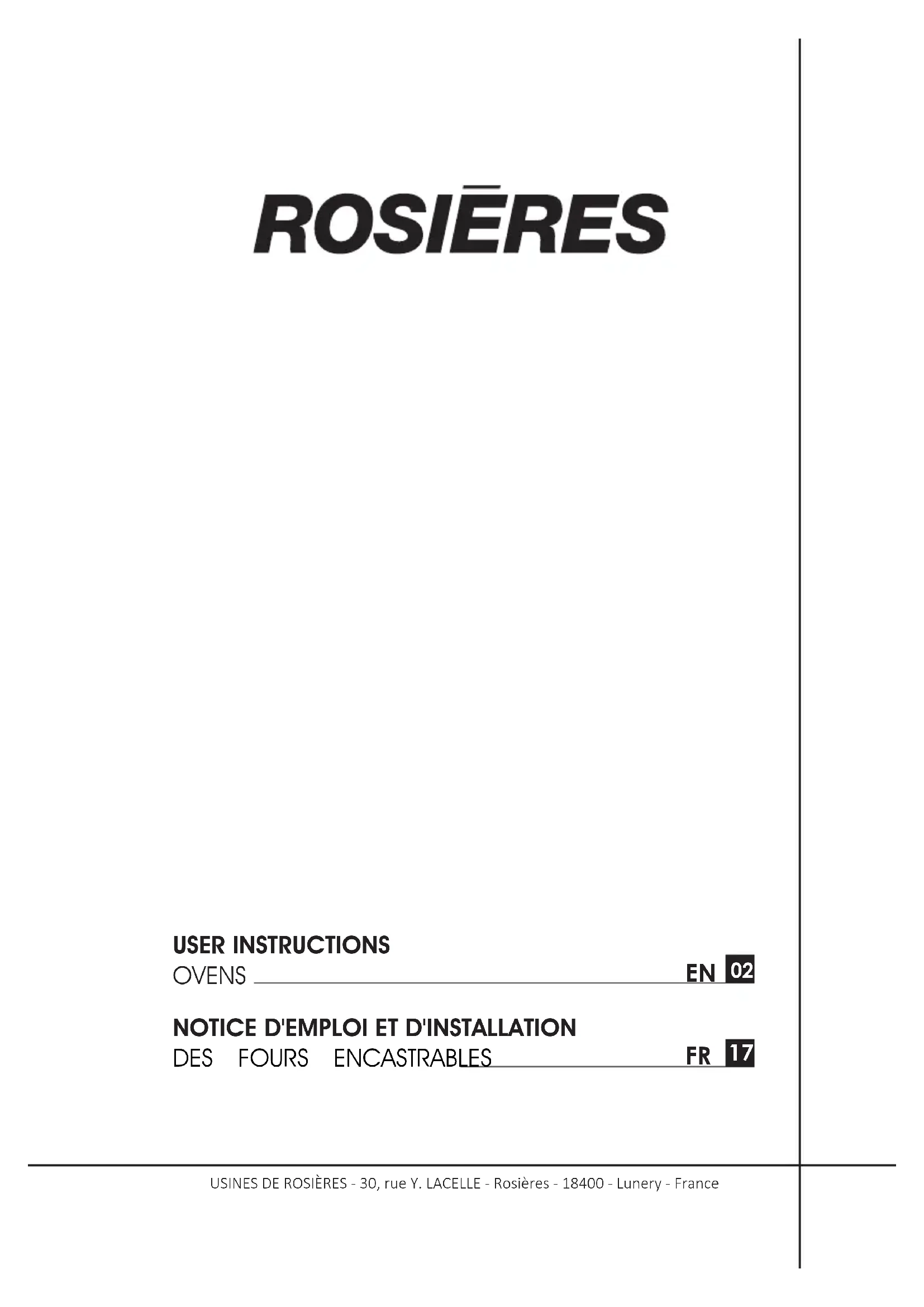RFC3O5978IN - Four ROSIERES - Notice d'utilisation et mode d'emploi gratuit