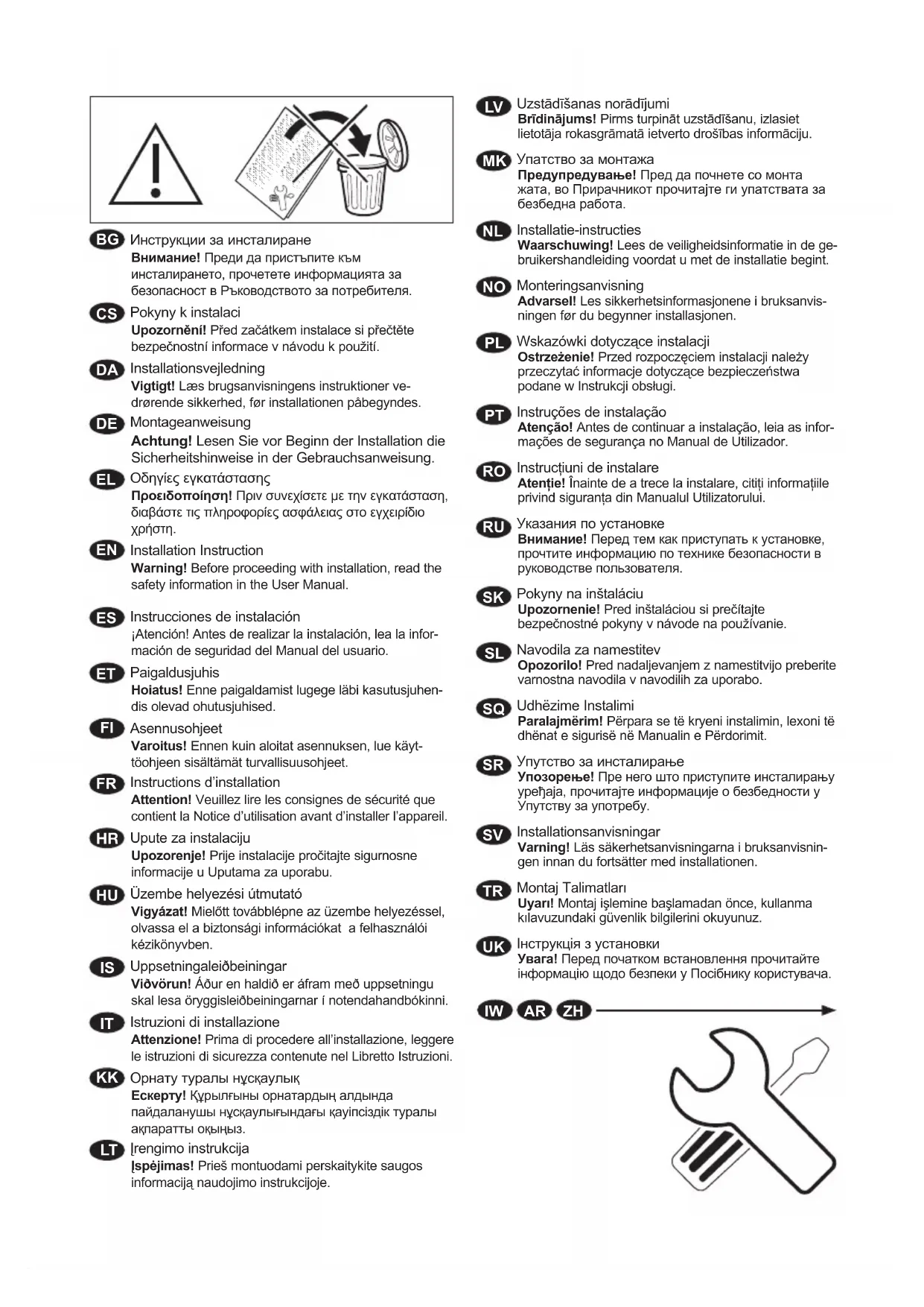 Instructions d’installation Attention! Veuillez lire les consignes de sécurité que contient la Notice d’utilisation avant d’installer l’appareil.