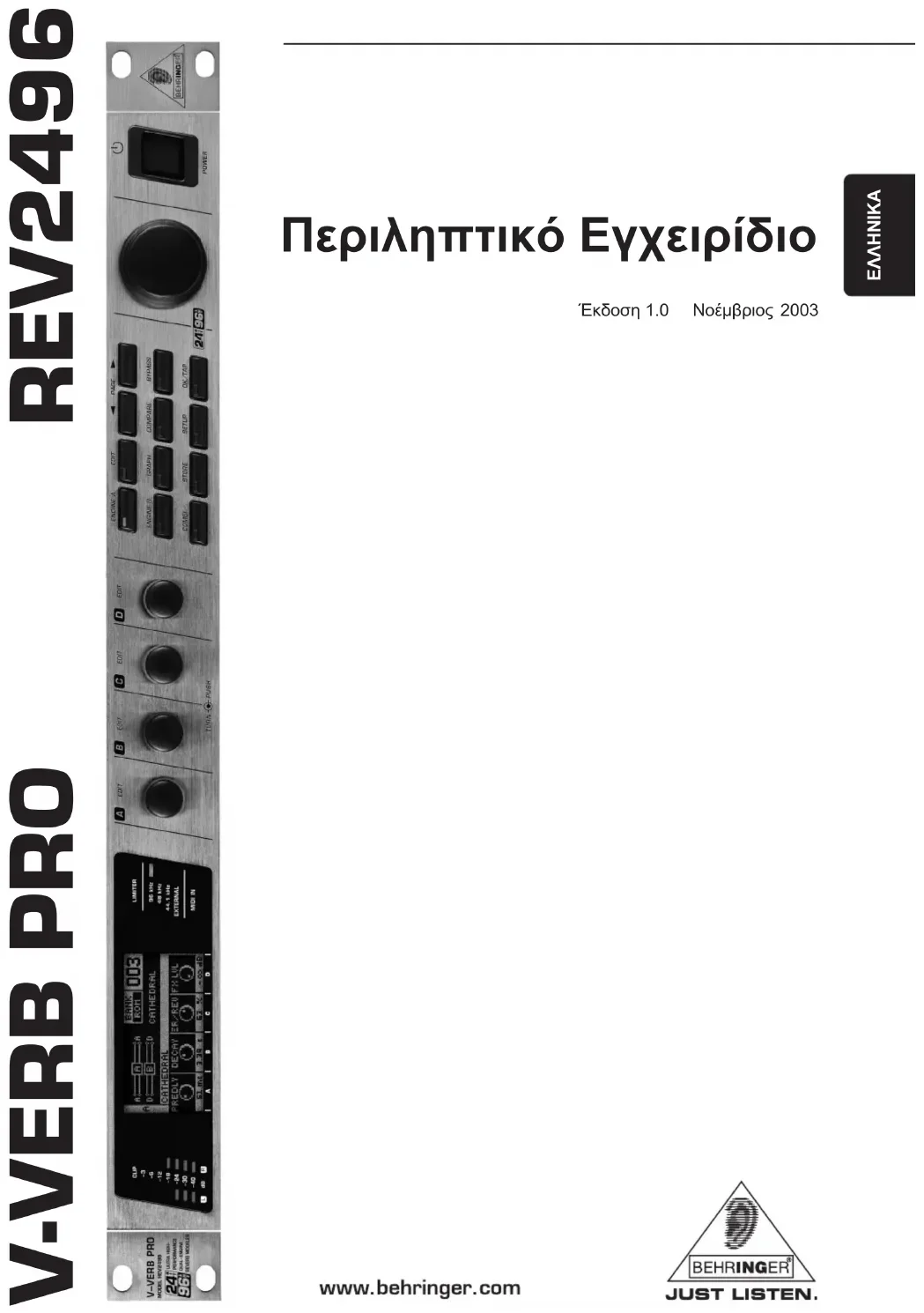 Retrouvez gratuitement la notice de l'appareil Vverb Pro REV2496 BEHRINGER au format PDF.