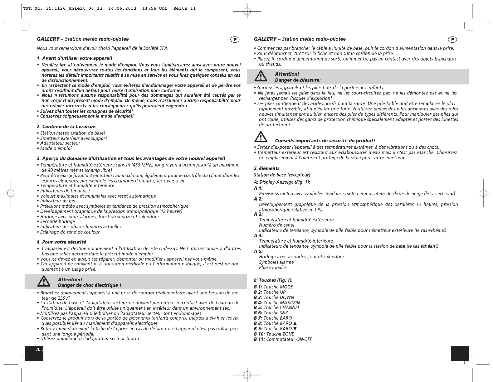 Retrouvez gratuitement la notice de l'appareil Gallery 35.1126 TFA au format PDF.