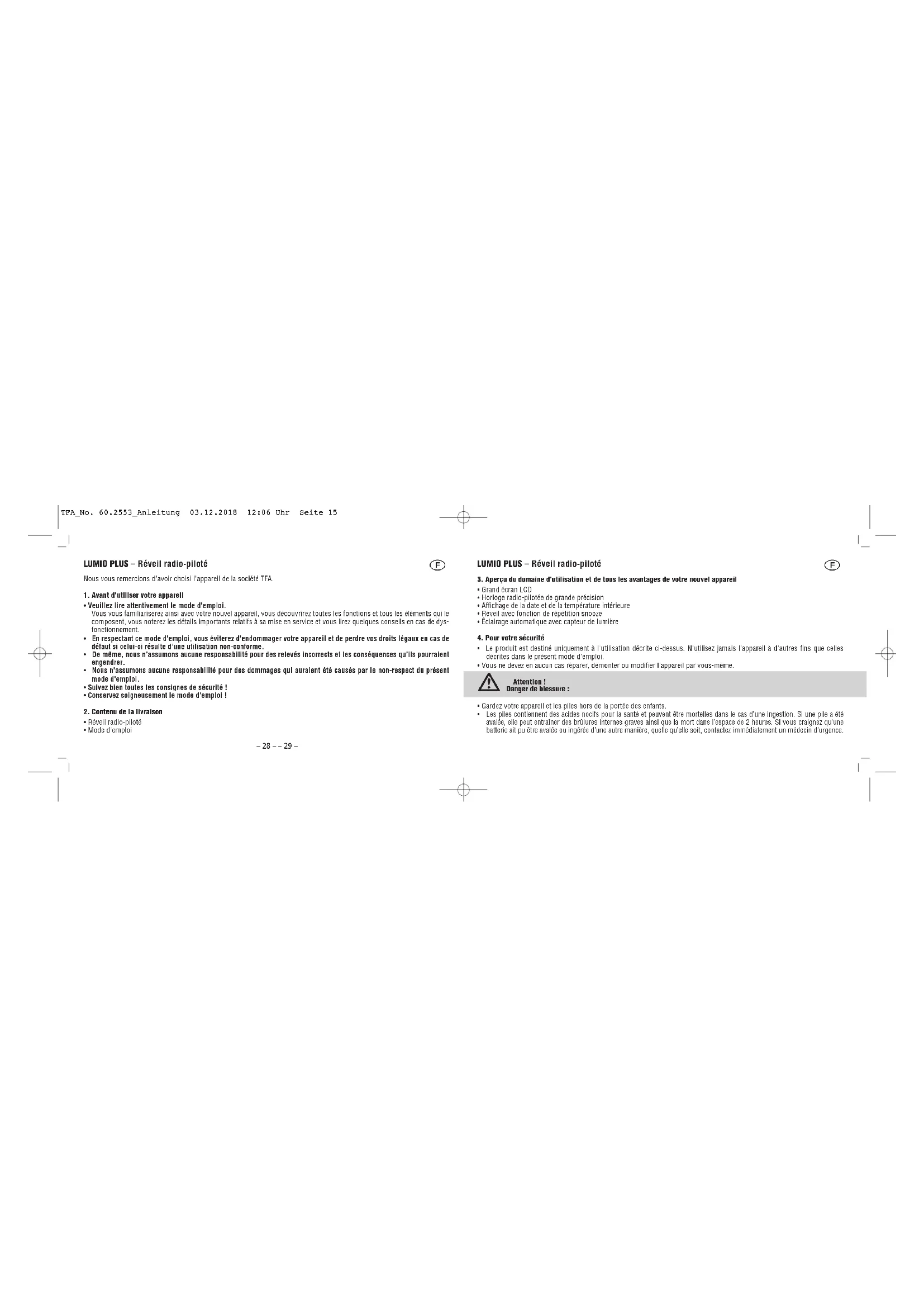 - Mode d'emploi LUMIO PLUS – Réveil radio-piloté