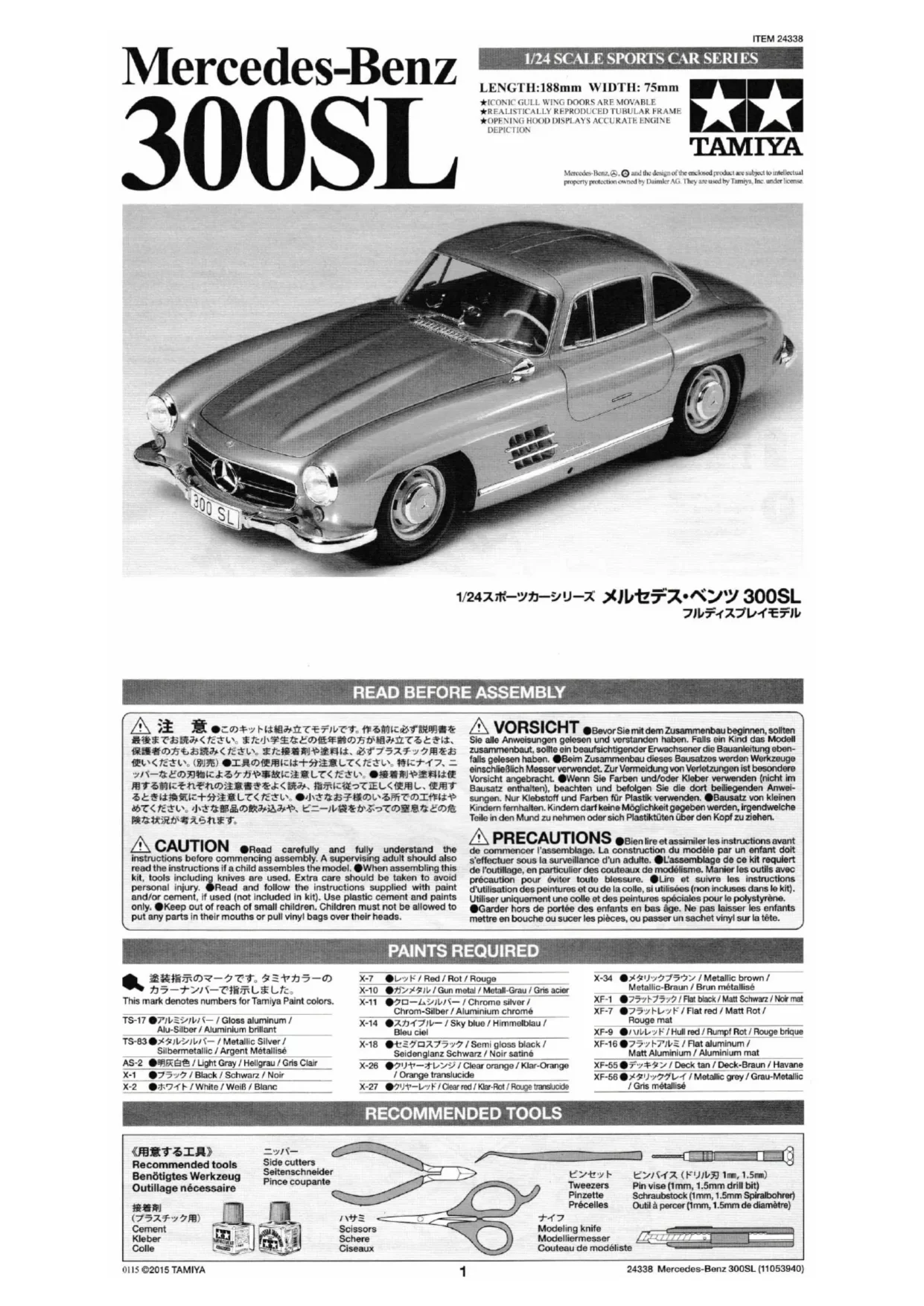 300024338 Mercedes Benz 300SL Gullwing Model - Jouets TAMIYA - Notice d'utilisation et mode d'emploi gratuit