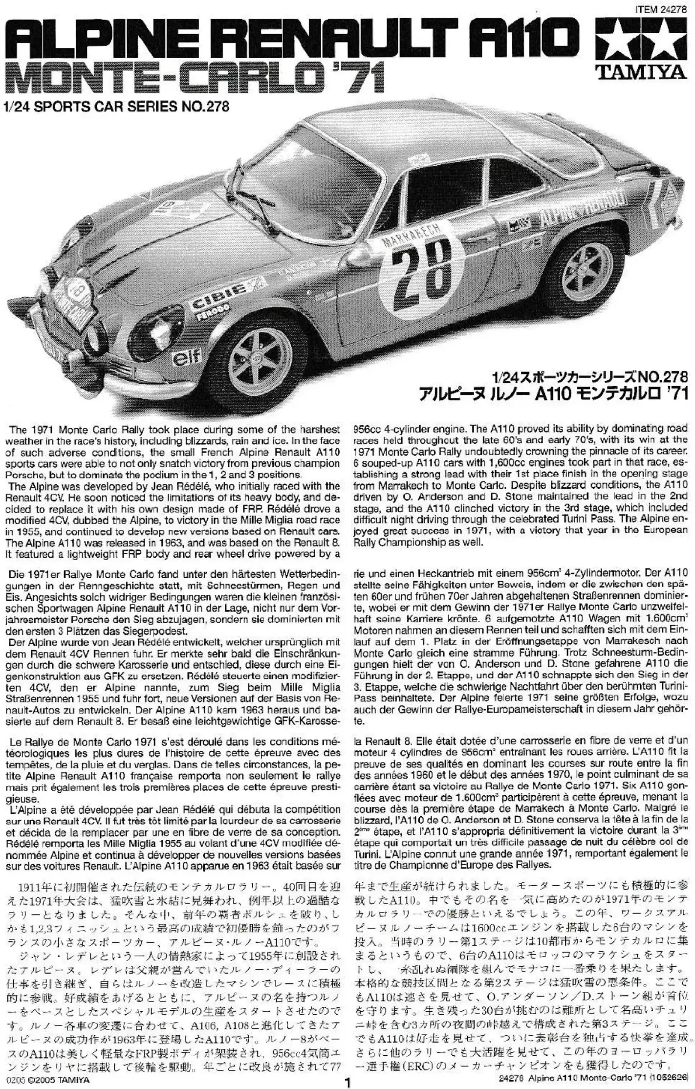 Renault Alpine A110 ´71 - Jouets TAMIYA - Notice d'utilisation et mode d'emploi gratuit