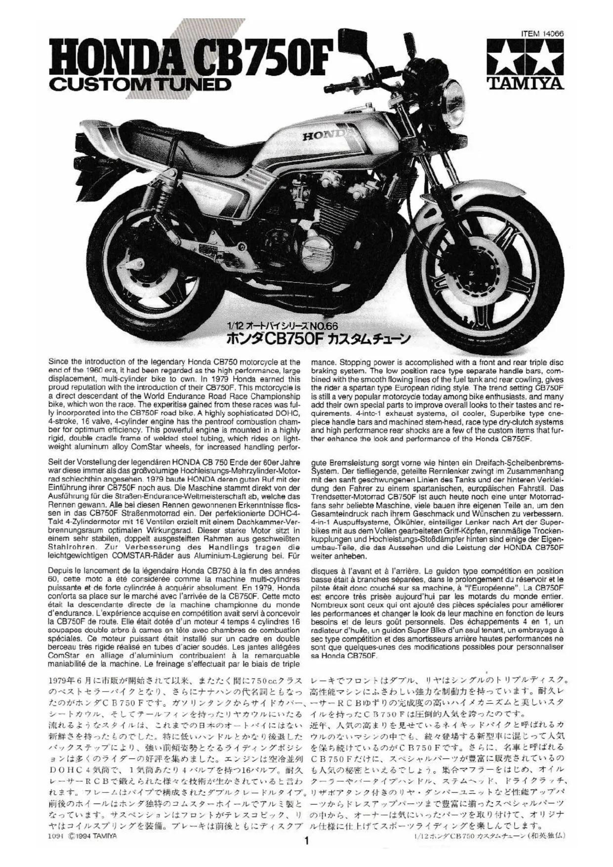 Honda CB750F - Jouets TAMIYA - Notice d'utilisation et mode d'emploi gratuit