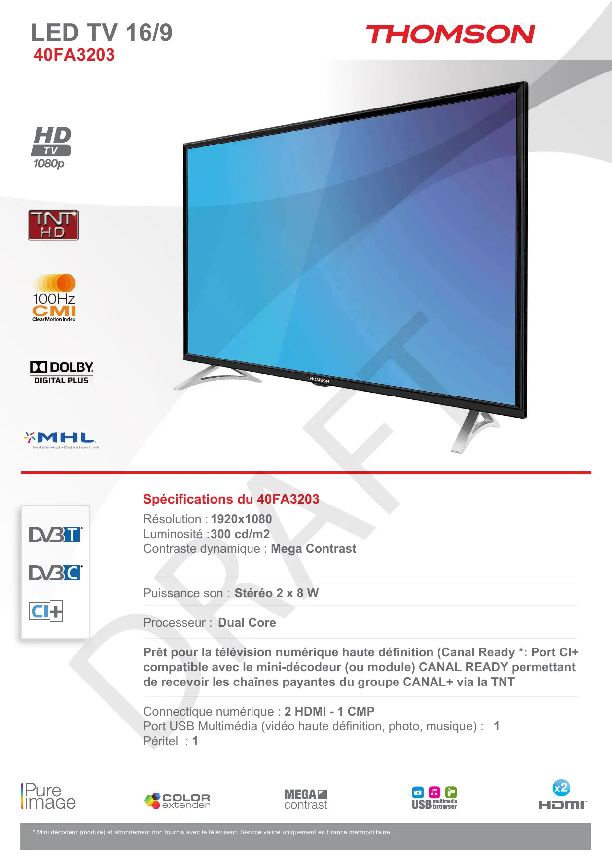 Téléchargez la notice de votre Téléviseur au format PDF gratuitement ! Retrouvez votre notice 40FA3203 - THOMSON et reprennez votre appareil électronique en main. Sur cette page sont publiés tous les documents nécessaires à l'utilisation de votre appareil 40FA3203 de la marque THOMSON.