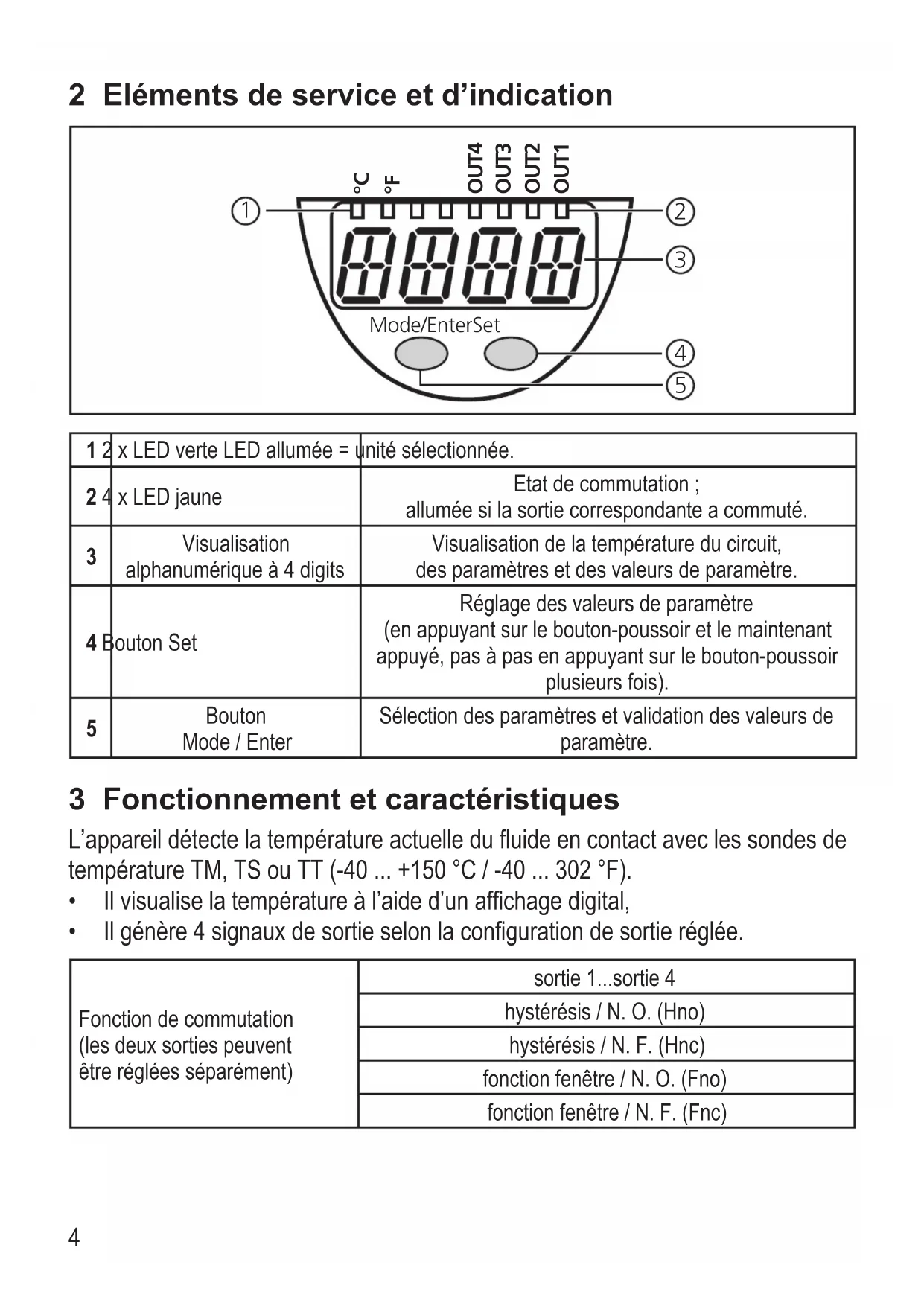 Il visualise la température à l'aide d'un affichage digital. Il génère 4 signaux de sortie selon la configuration de sortie réglée.
