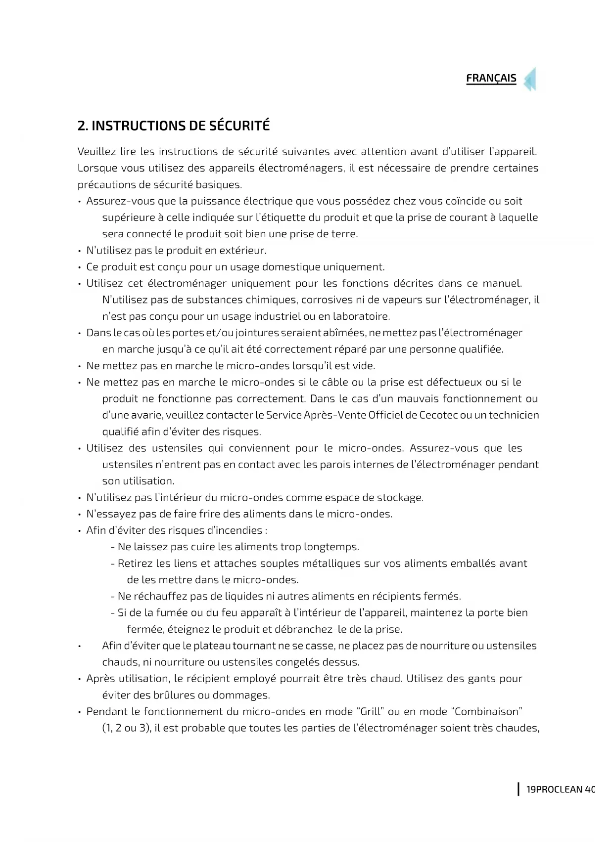 ProClean 4010 - Four à micro-ondes CECOTEC - Notice d'utilisation et mode d'emploi gratuit