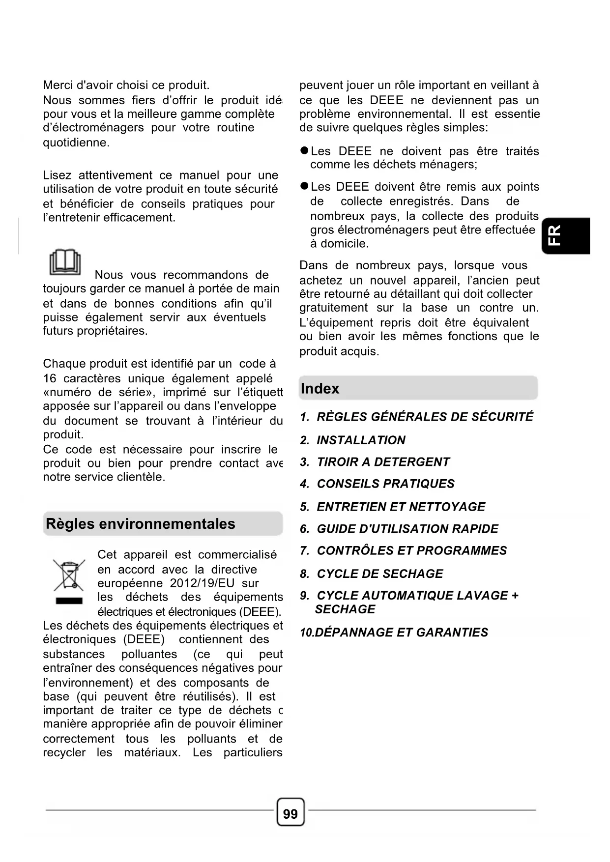 Merci d'avoir choisi ce produit. Nous sommes fiers d’offrir le produit idéal pour vous et la meilleure gamme complète d’électroménagers pour votre routine quotidienne. Lisez attentivement ce manuel pour une utilisation de votre produit en toute sécurité et bénéficier de conseils pratiques pour l’entretenir efficacement. Nous vous recommandons de toujours garder ce manuel à portée de main et dans de bonnes conditions afin qu’il puisse également servir aux éventuels futurs propriétaires. Chaque produit est identifié par un code à 16 caractères unique également appelé «numéro de série», imprimé sur l’étiquette apposée sur l’appareil ou dans l’enveloppe du document se trouvant à l’intérieur du produit. Ce code est nécessaire pour inscrire le produit ou bien pour prendre contact avec notre service clientèle.