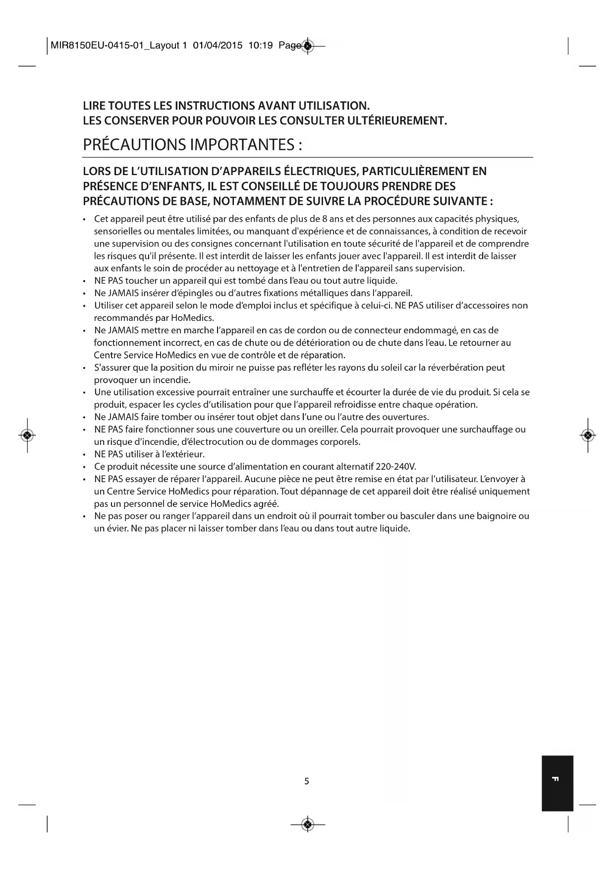 MIR8150EU - Mirroir HOMEDICS - Notice d'utilisation et mode d'emploi gratuit