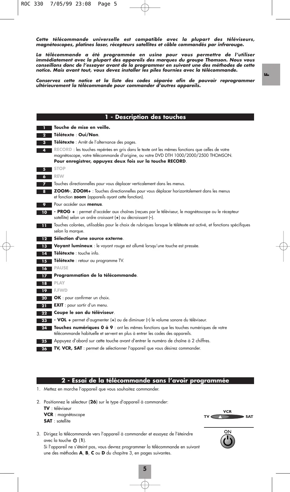 ROC 330 - Télécommande THOMSON - Notice d'utilisation et mode d'emploi gratuit