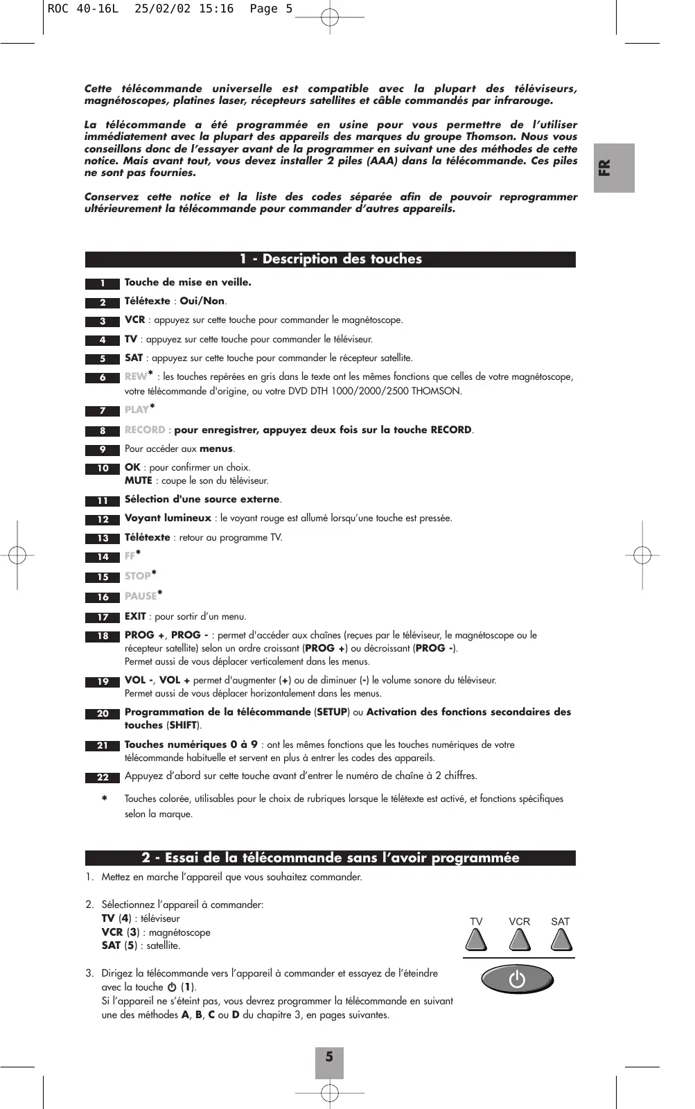 MODE D'EMPLOI ROC 40 THOMSON