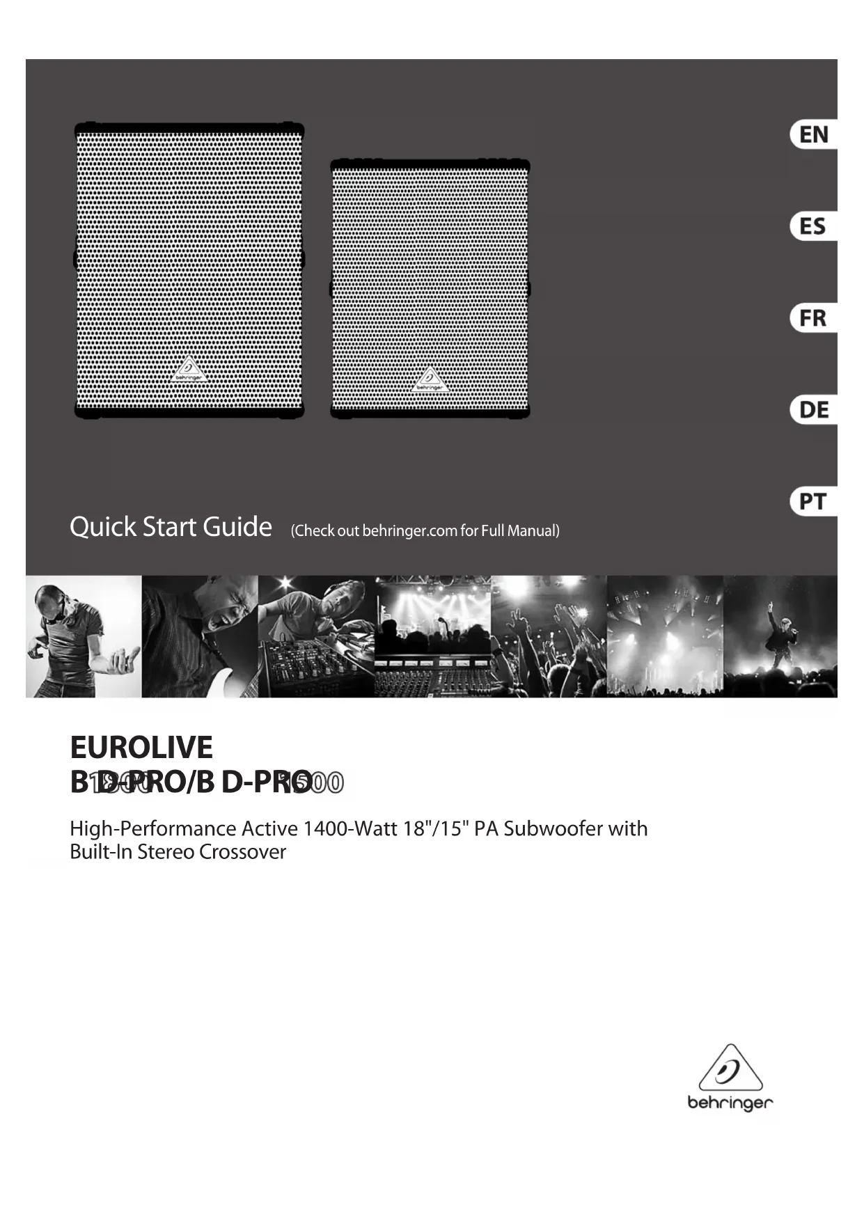 Retrouvez gratuitement la notice de l'appareil Eurolive B1500DPro BEHRINGER au format PDF.