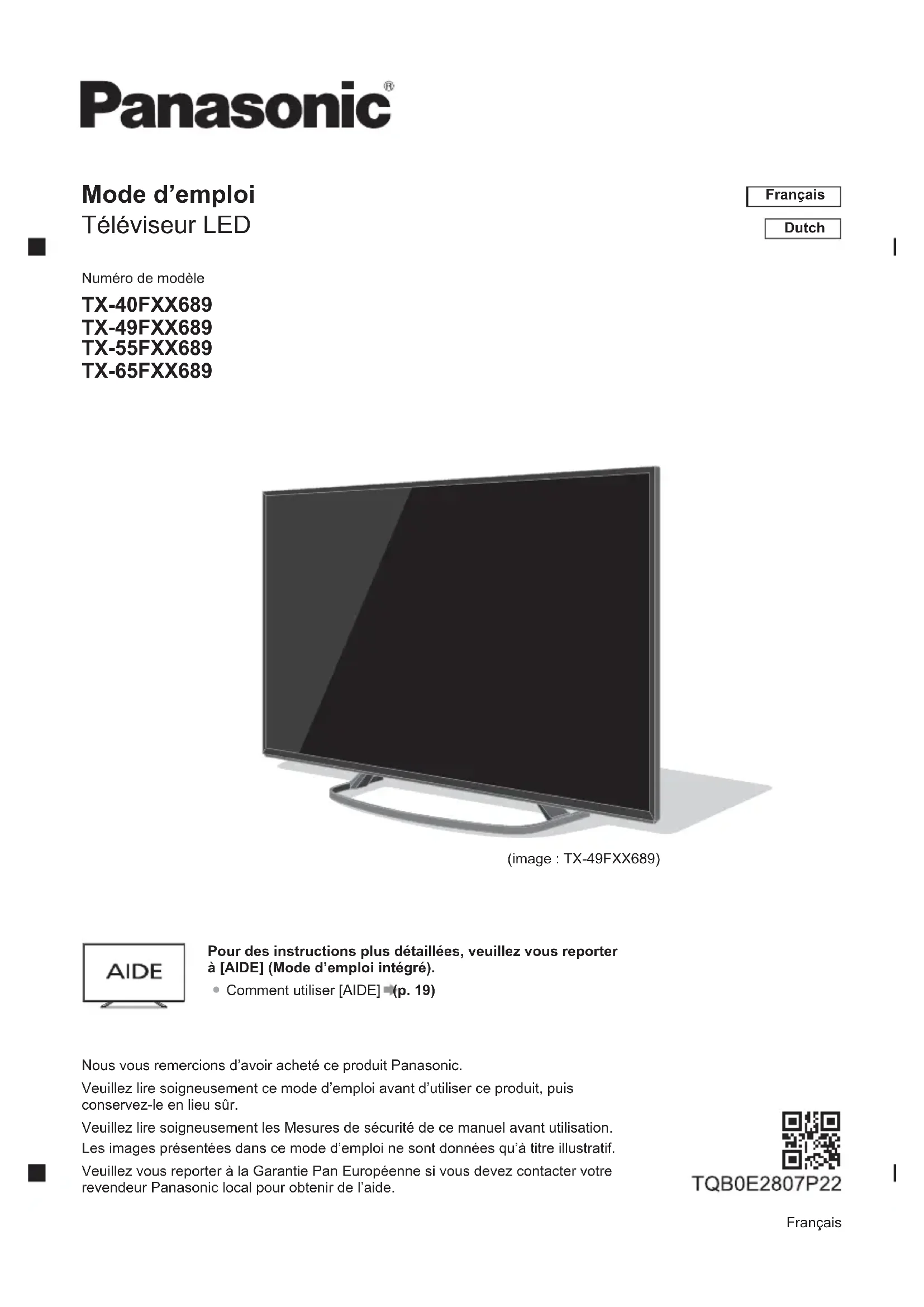 Retrouvez gratuitement la notice de l'appareil TX40FXX689 PANASONIC au format PDF.