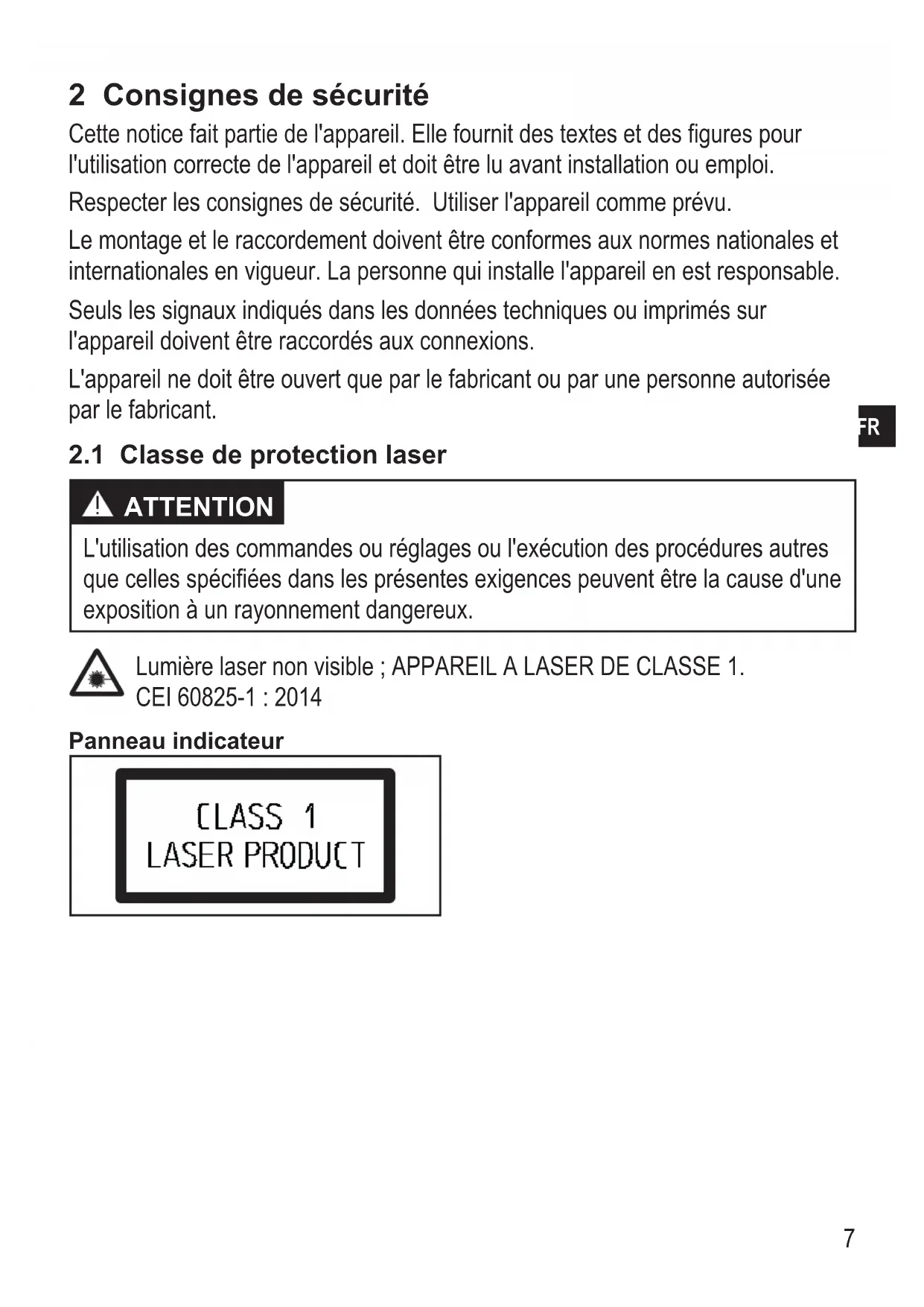 2 Consignes de sécurité Cette notice fait partie de l'appareil Elle fournit des textes et des figures pour l'utilisation correcte de l'appareil et doit être lu avant installation ou emploi Respecter les consignes de sécurité Utiliser l'appareil comme prévu Le montage et le raccordement doivent être conformes aux normes nationales et internationales en vigueur La personne qui installe l'appareil en est responsable Seuls les signaux indiqués dans les données techniques ou imprimés sur l'appareil doivent être raccordés aux connexions L'appareil ne doit être ouvert que par le fabricant ou par une personne autorisée par le fabricant