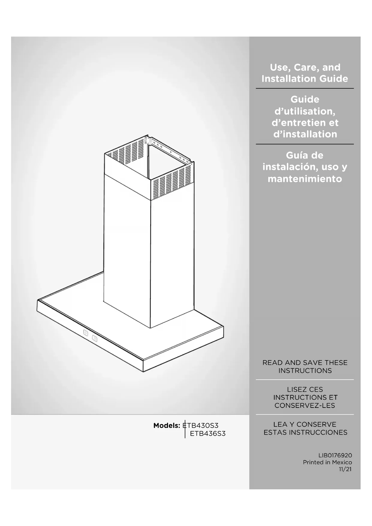 Retrouvez gratuitement la notice de l'appareil Toblino ETB430S3 ELICA au format PDF.