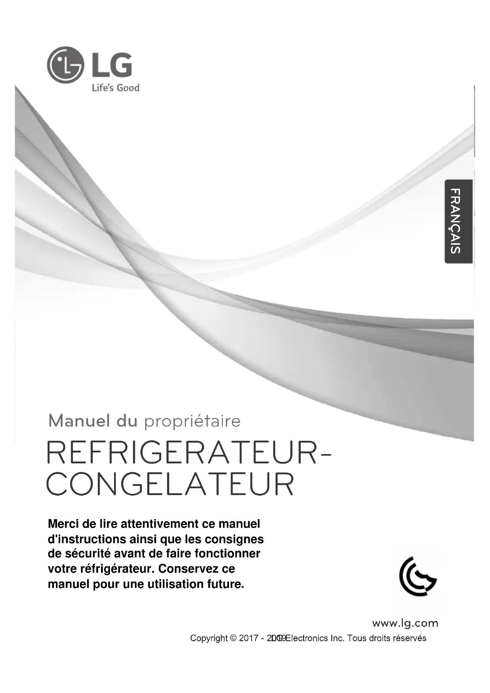 Merci de lire attentivement ce manuel d'instructions ainsi que les consignes de sécurité avant de faire fonctionner votre réfrigérateur. Conservez ce manuel pour une utilisation future. Manuel du propriétaire REFRIGERATEUR- CONGELATEUR FRANÇAIS www.lg.com Copyright © 2017 - LG Electronics Inc. Tous droits réservés2019INSTALLATION