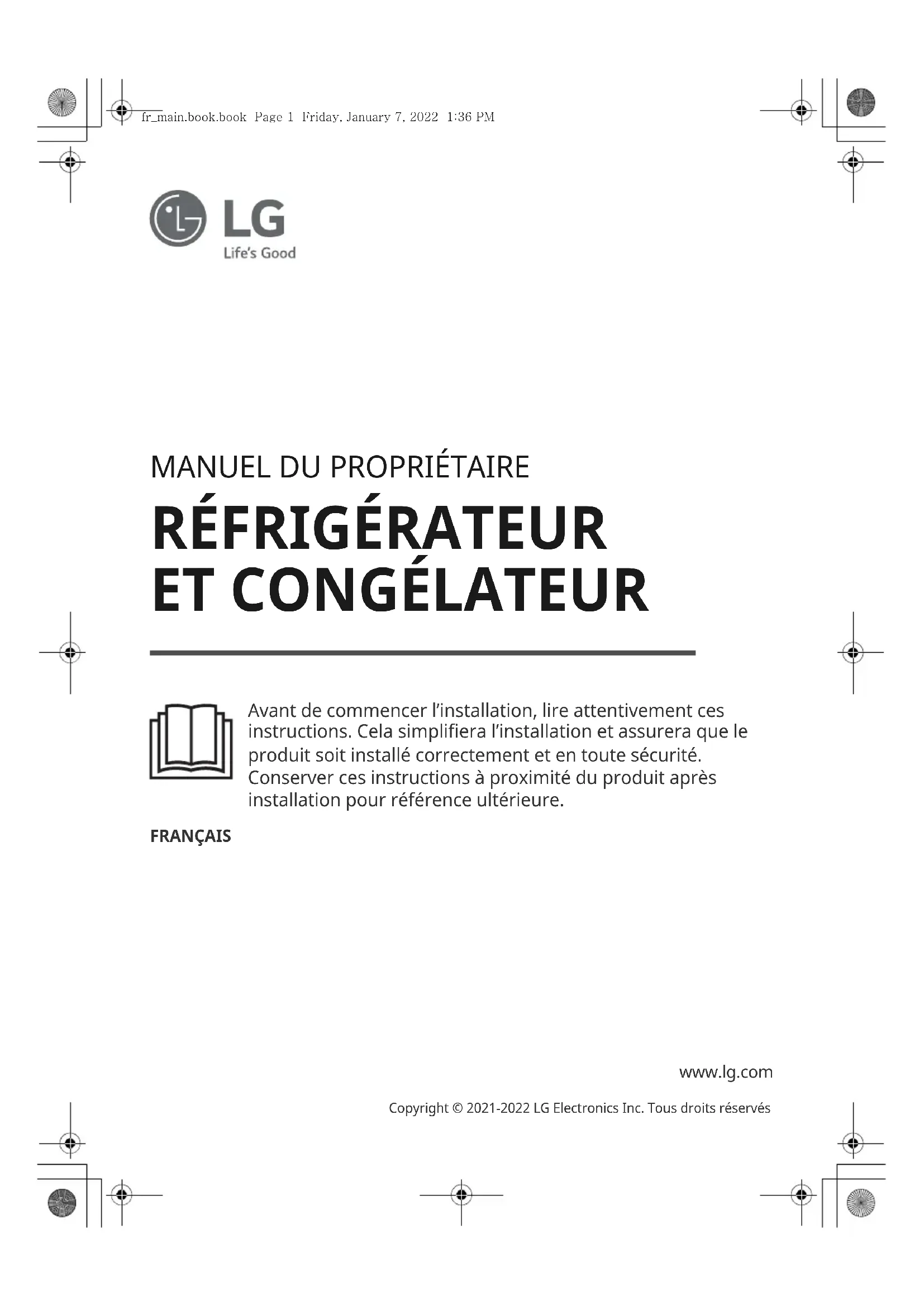 Avant de commencer l’installation, lire attentivement ces instructions. Cela simplifiera l’installation et assurera que le produit soit installé correctement et en toute sécurité. Conserver ces instructions à proximité du produit après installation pour référence ultérieure. FRANÇAIS www.lg.com Copyright © 2021-2022 LG Electronics Inc. Tous droits réservés fr_main.book.book Page 1 Friday, January 7, 2022 1:36 PMTABLE DES MATIÈRES Ce manuel peut contenir des images ou un contenu différent du modèle que vous avez acheté. Ce manuel est sujet à révision par le fabricant.