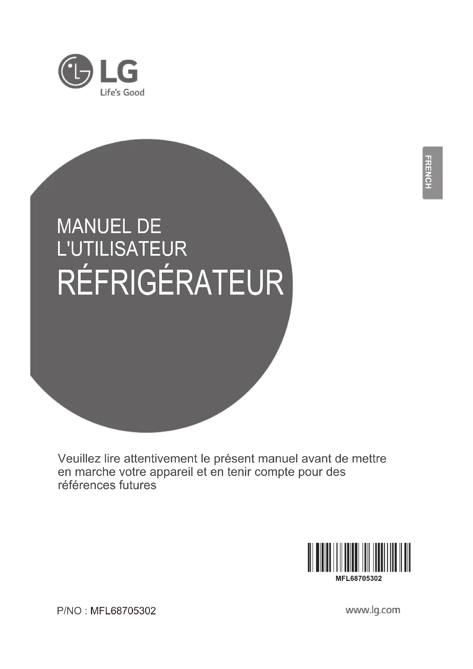 Veuillez lire attentivement le présent manuel avant de mettre en marche votre appareil et en tenir compte pour des références futures MFL68705302 FRENCH