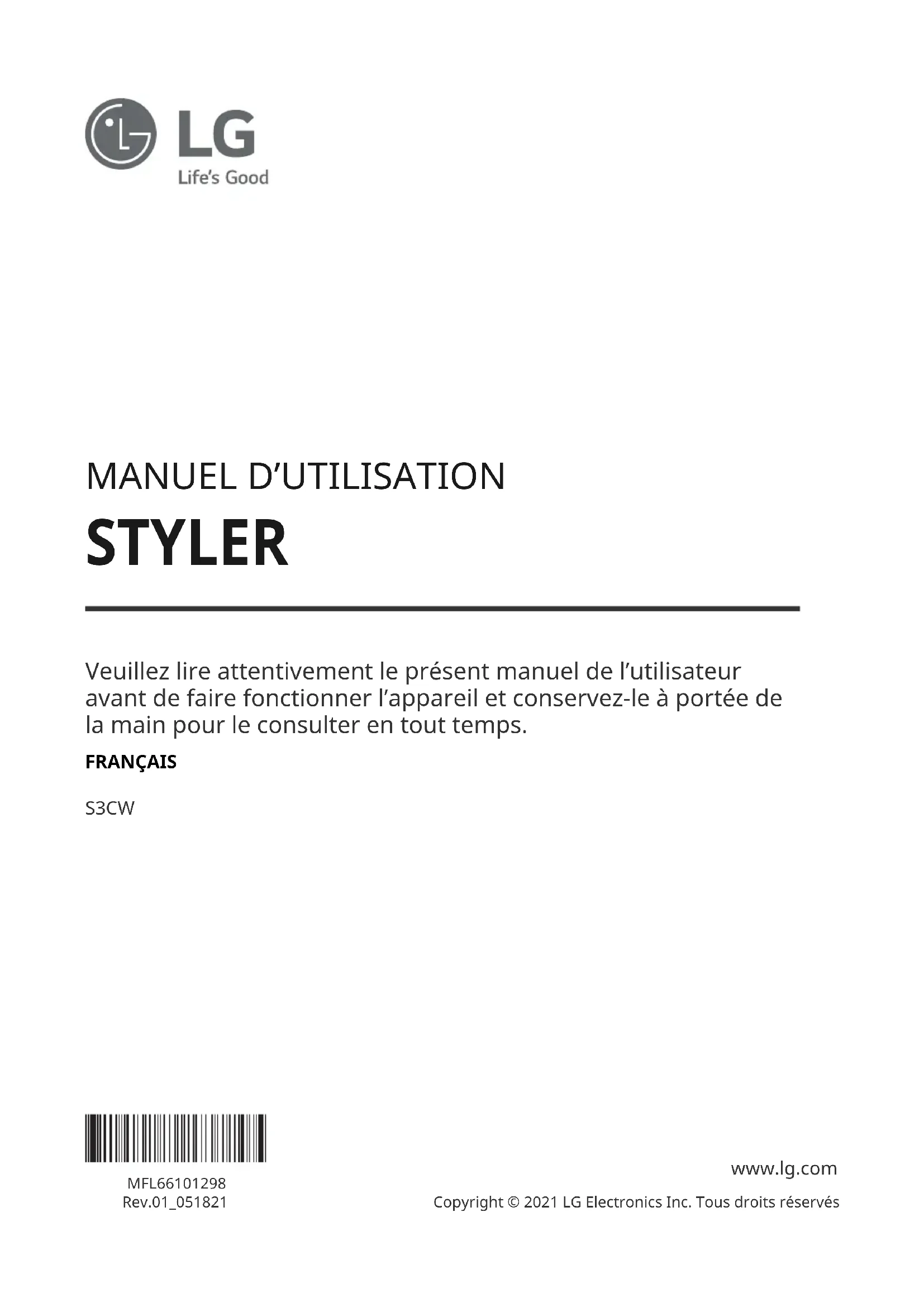 STYLER Veuillez lire attentivement le présent manuel de lʼutilisateur avant de faire fonctionner lʼappareil et conservez-le à portée de la main pour le consulter en tout temps. FRANÇAIS S3CW MFL66101298 Rev.01_051821 www.lg.com Copyright © 2021 LG Electronics Inc. Tous droits réservésTABLE DES MATIÈRES