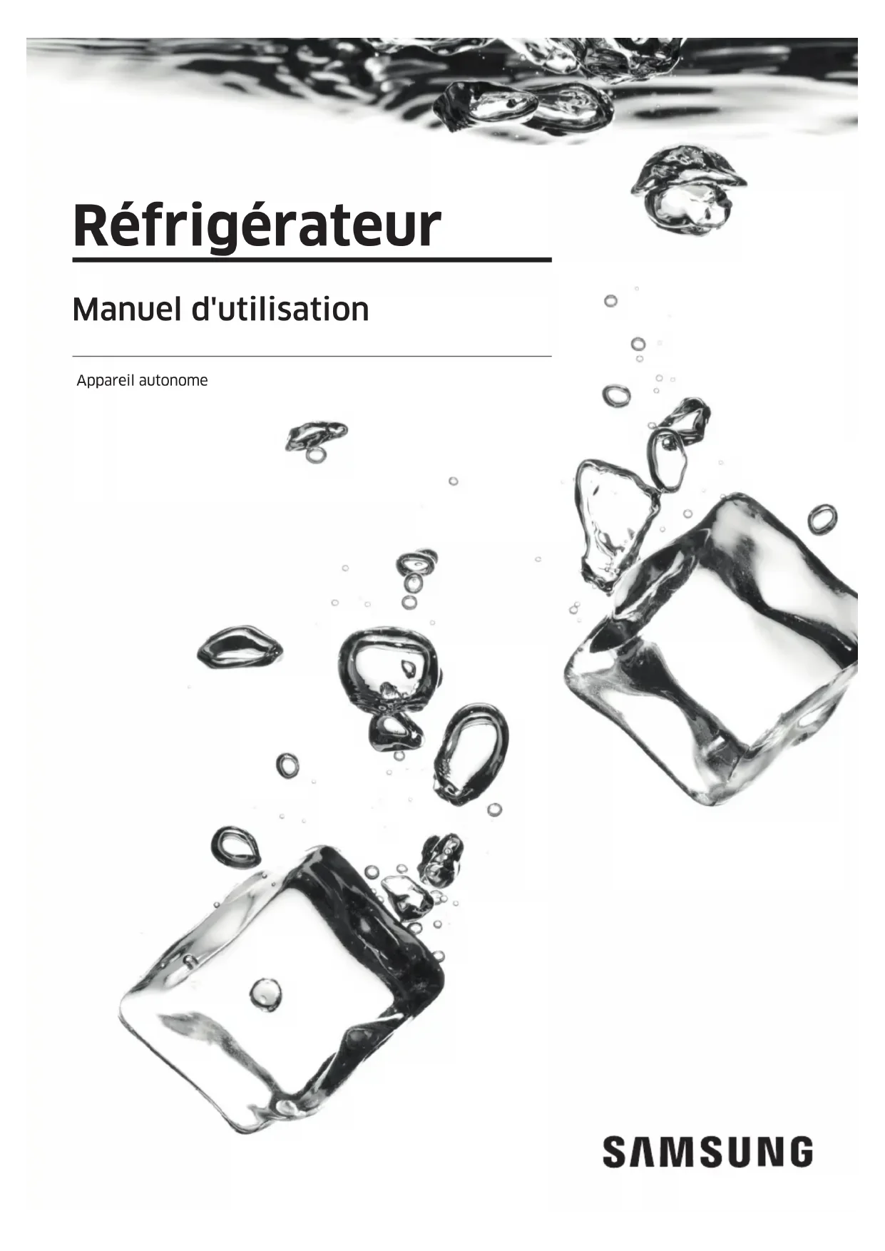 Sommaire Table des matières Informations relatives à la sécurité 3 Ce que vous devez savoir à propos des consignes de sécurité 3 Symboles et précautions de sécurité importants : 4 Importantes précautions de sécurité 5 Mises en garde importantes concernant le transport et le site d'installation 8 Mises en garde importantes relatives à l'installation 8 Mises en garde concernant l'installation 12 Mises en garde importantes concernant l'utilisation 12 Précautions d'emploi 17 Précautions de nettoyage 19 Mises en garde importantes concernant l'élimination 21 Astuces supplémentaires pour une utilisation correcte 22 Consignes concernant la Directive DEEE 23 Installation 24 Présentation rapide du réfrigérateur 24 Installation étape par étape 26 Démontage des portes pour passer l'entrée 33 Fonctionnement 38 Panneau de commande 38 SmartThings 42 Panneau distributeur 47 Fonctions spéciales 48 Maintenance 54 Utilisation et entretien 54 Nettoyage 56 Remplacement 58 Dépannage 62 Généralité 62 Entendez-vous des bruits anormaux émis par le réfrigérateur ? 66 SmartThings 68 Réseau intelligent 69Français 3 Informations relatives à la sécurité Avant d'utiliser votre réfrigérateur Samsung, veuillez lire attentivement ce manuel, pour vous assurer d'avoir compris comment utiliser ses fonctions et ses commandes, de façon sécurisée et efcace. Ce que vous devez savoir à propos des consignes de sécurité