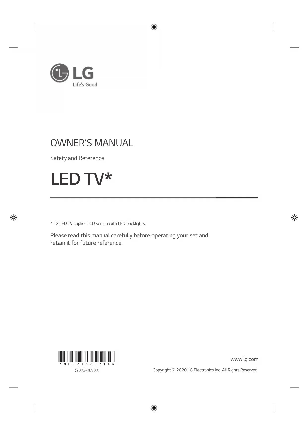 - Le téléviseur LED de LG combine un écran LCD et un rétroéclairage LED. www.lg.com Copyright © 2020 LG Electronics Inc. Tous droits réservés.2 FRANÇAIS Avertissement! Consignes de sécurité AVERTISSEMENT RISQUE D'ÉLECTROCUTION. NE PAS OUVRIR.