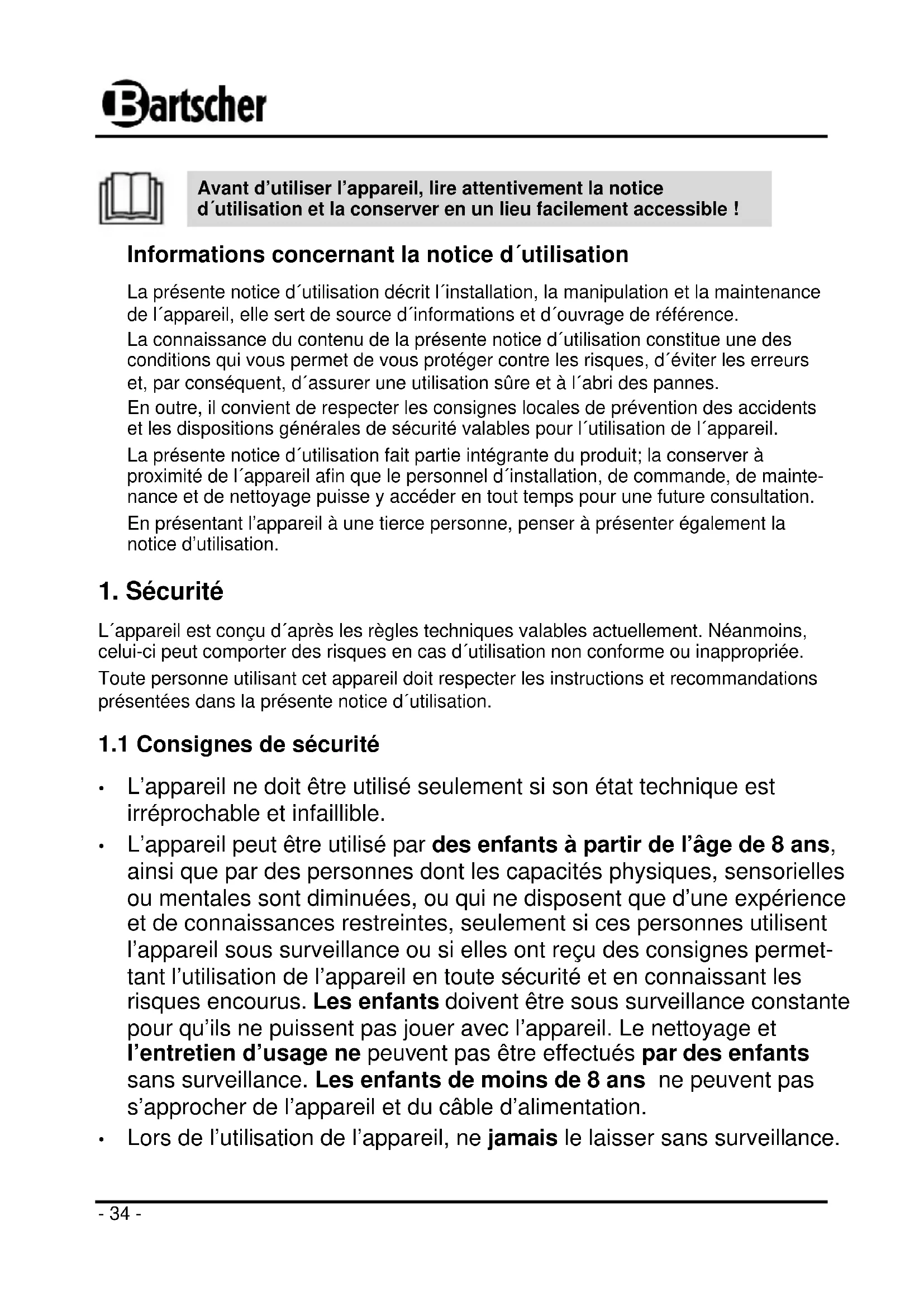 Retrouvez gratuitement la notice de l'appareil A150510 BARTSCHER au format PDF.