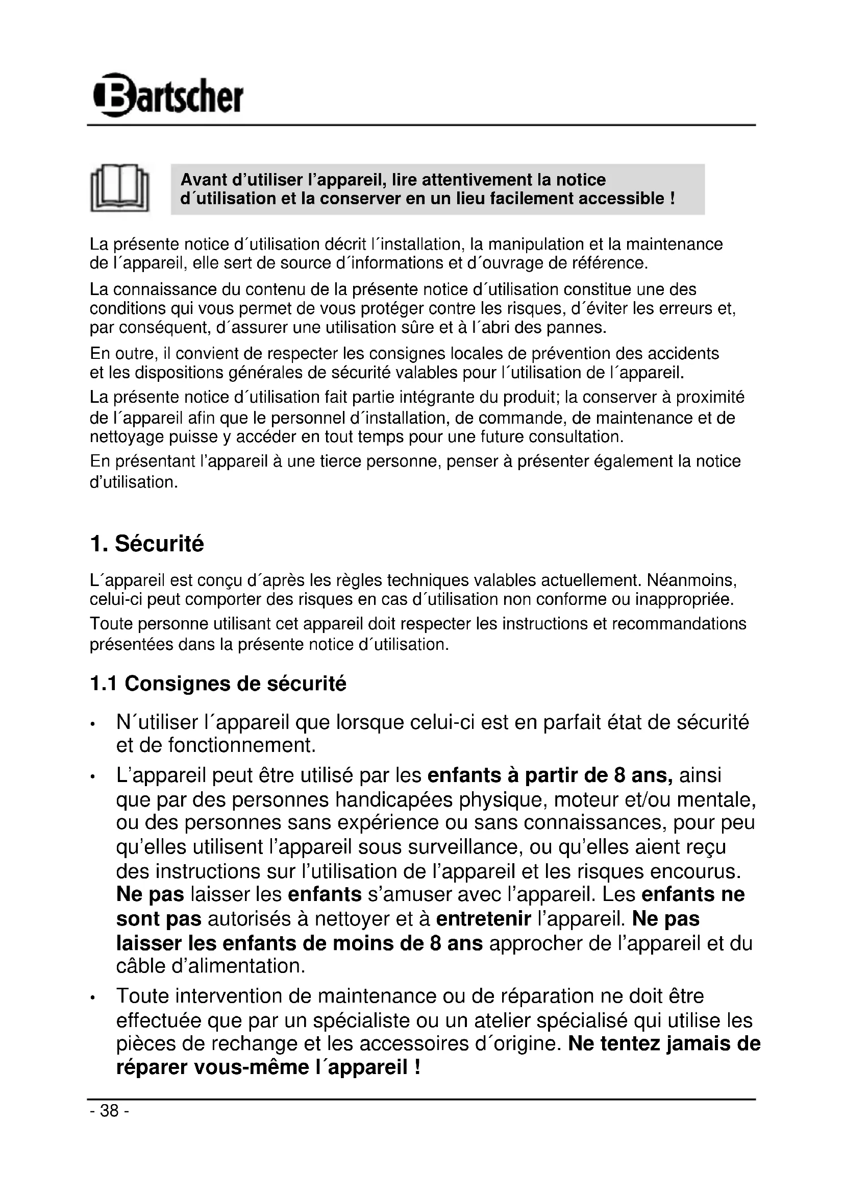 Retrouvez gratuitement la notice de l'appareil GE 28 BARTSCHER au format PDF.